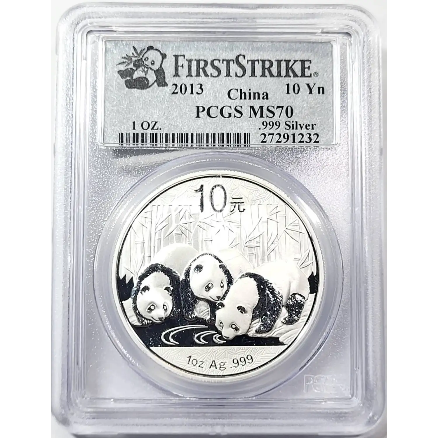 2013 People's Republic of China 10 Yuan 1 oz Silver Panda PCGS MS-70 First Strike