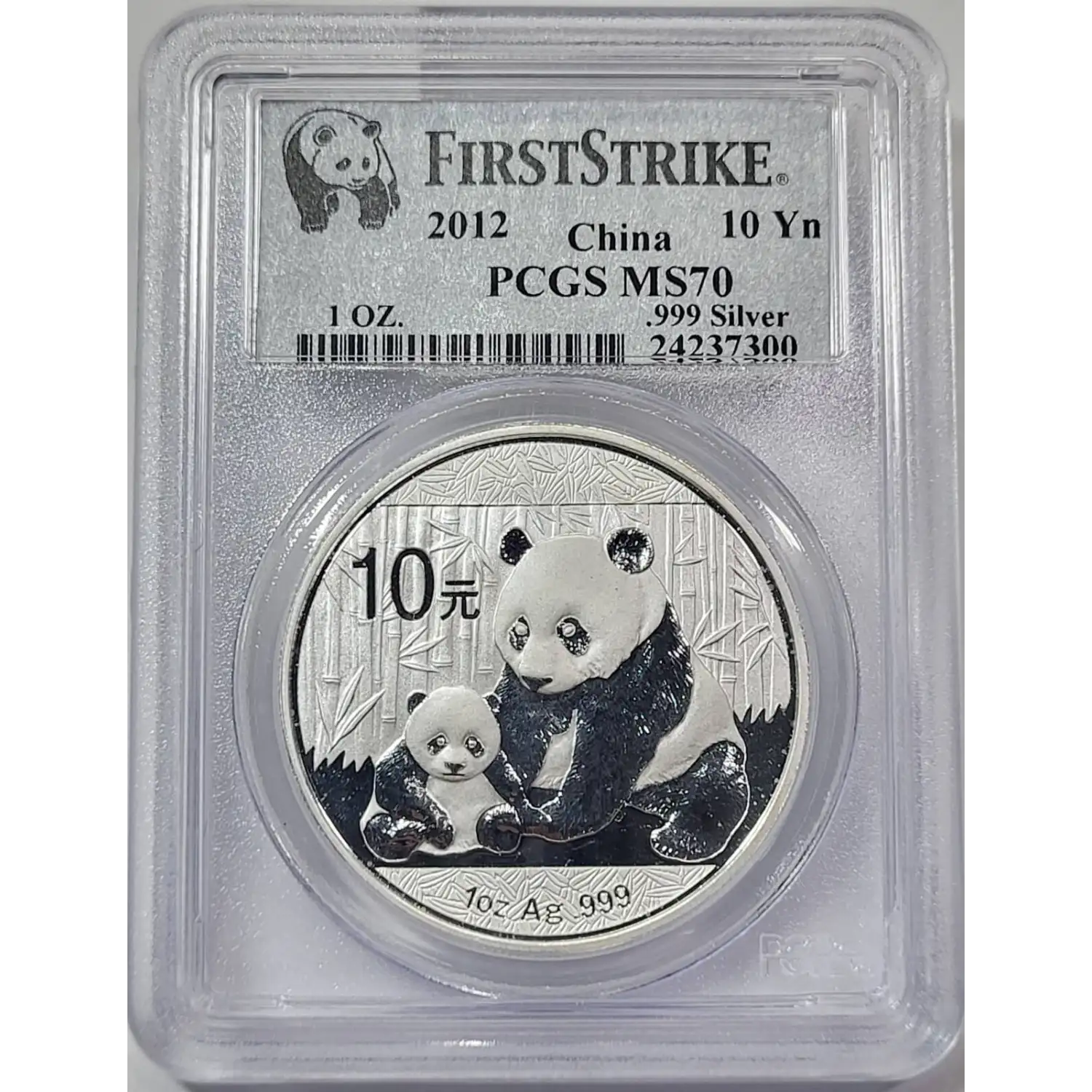 2012 China 1 oz Silver Panda 10 Yuan PCGS MS-70 First Strike
