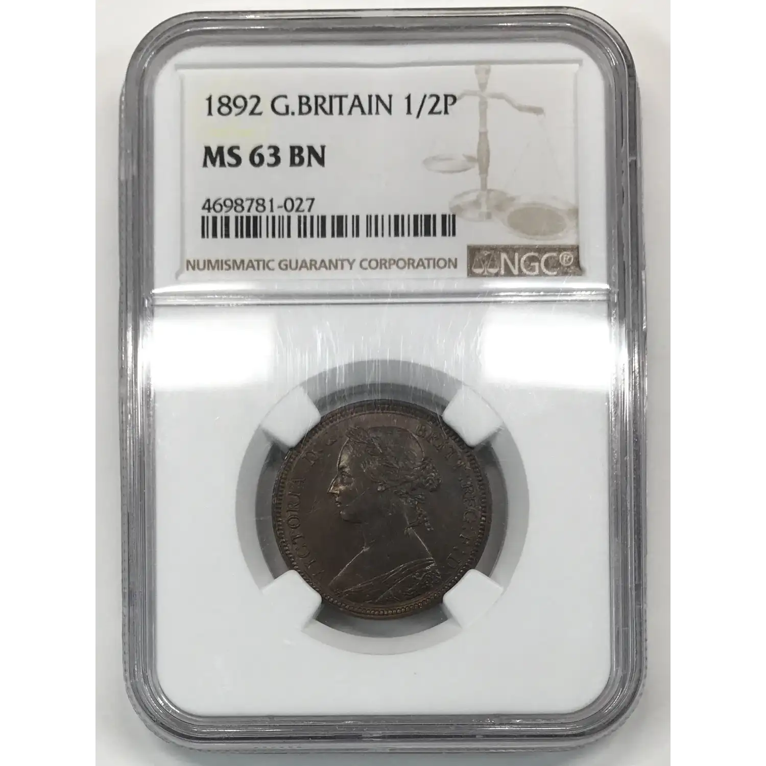 1892 Great Britain Bronze 1/2 PENNY NGC MS-63 BN