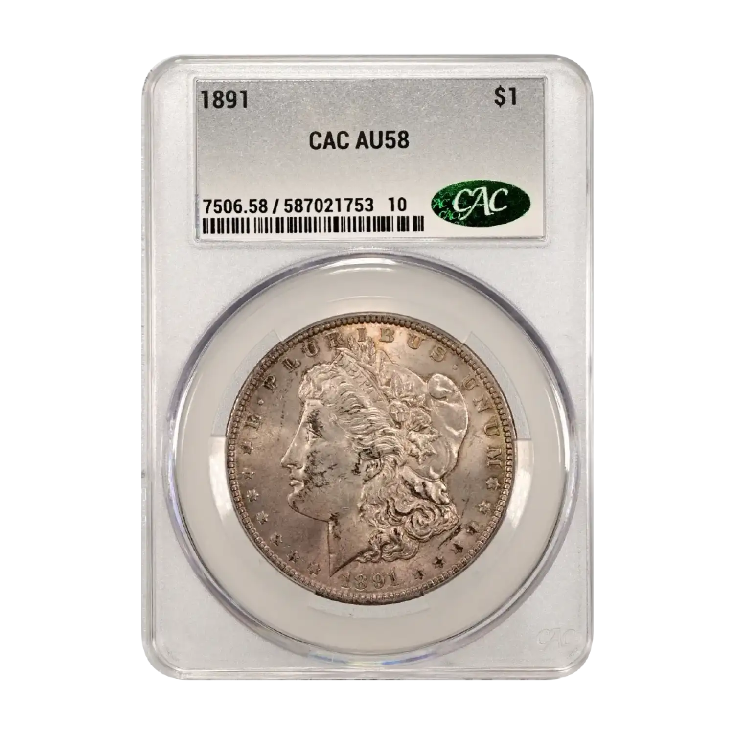 1891 Morgan Silver Dollar CACG AU 58 CAC
