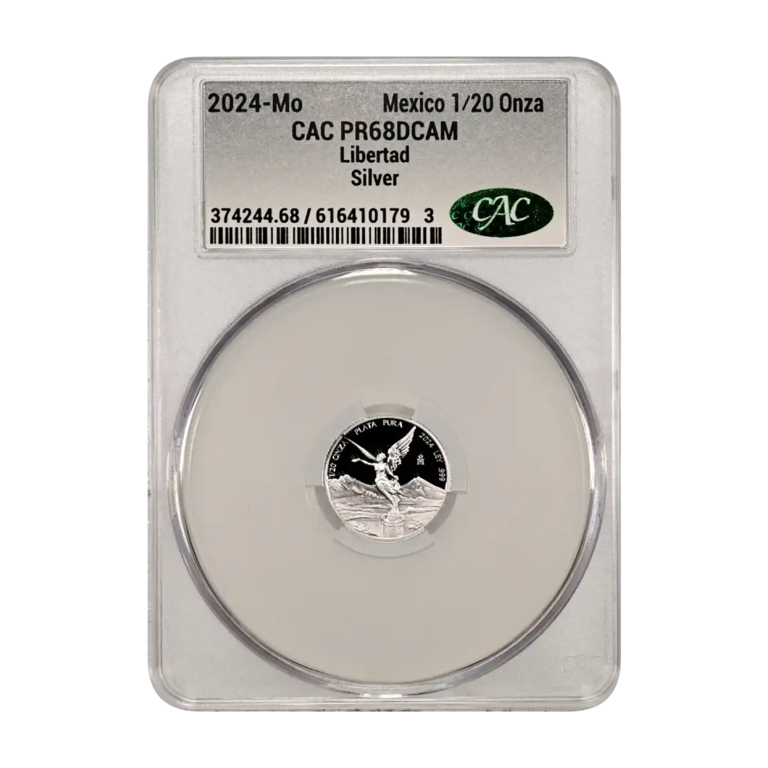 2024-Mo Proof Mexico 1/20 oz Silver Libertad Onza CAC Grading (CACG) PR 68 DCAM