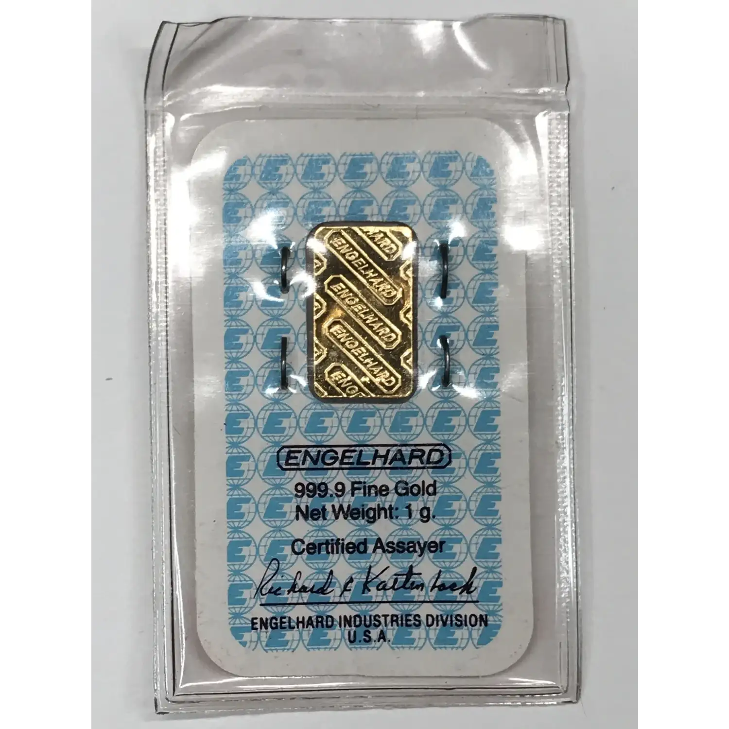 Engelhard 1 gram (1g) Gold Bar w Assay Certificate - J8823