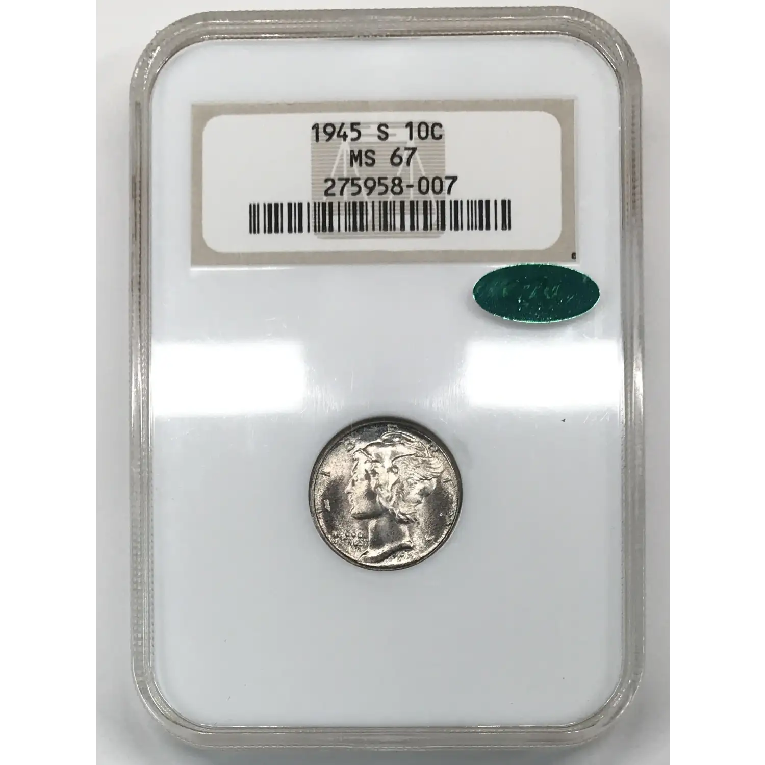 1945 S Mercury Dime NGC MS-67 CAC - Old Fatty Holder
