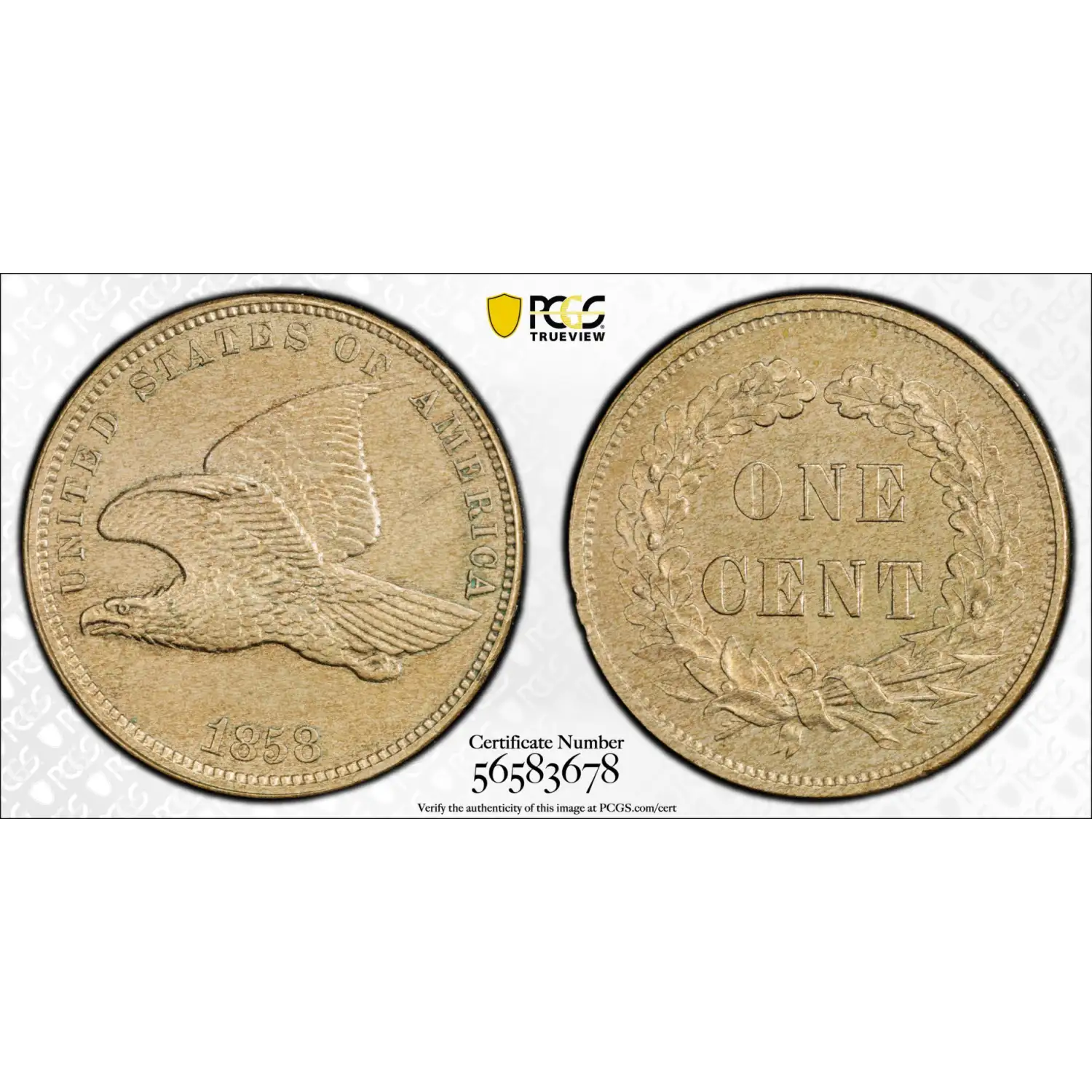 1858 Judd J-192 Pattern Flying Eagle Cent PCGS PR-63 CAC - Small Letters Obverse , Wide Wreath Reverse