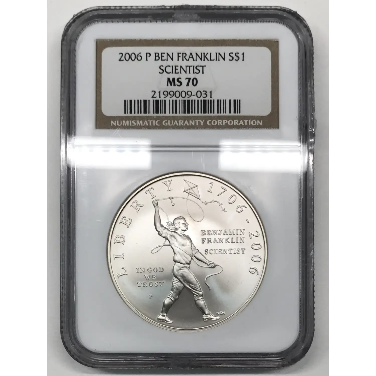 2006 P Benjamin Franklin Tercentenary Scientist Commemorative Silver Dollar NGC MS-70