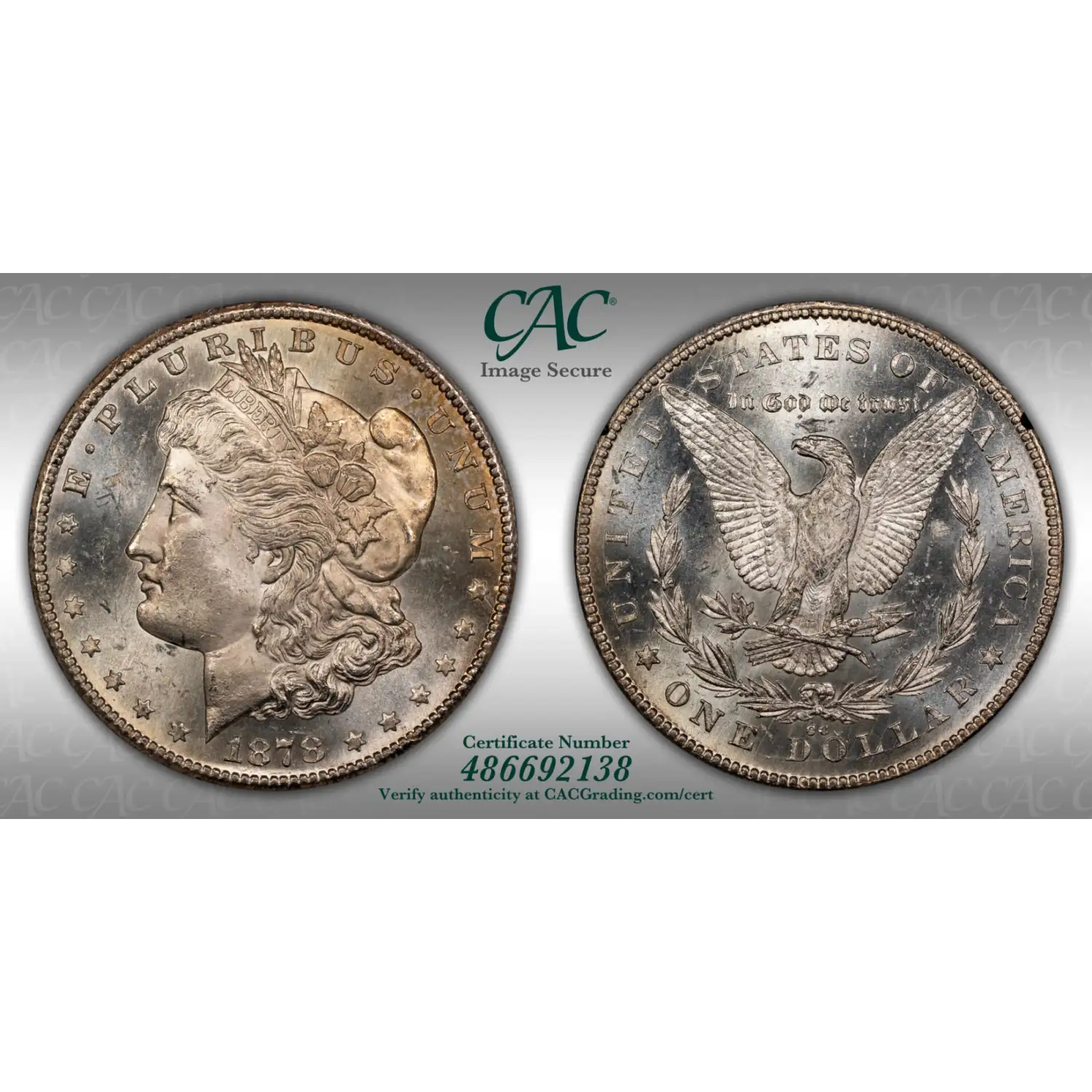1878-CC GSA Treasure Morgan Silver Dollar CAC Grading (CACG) MS 62