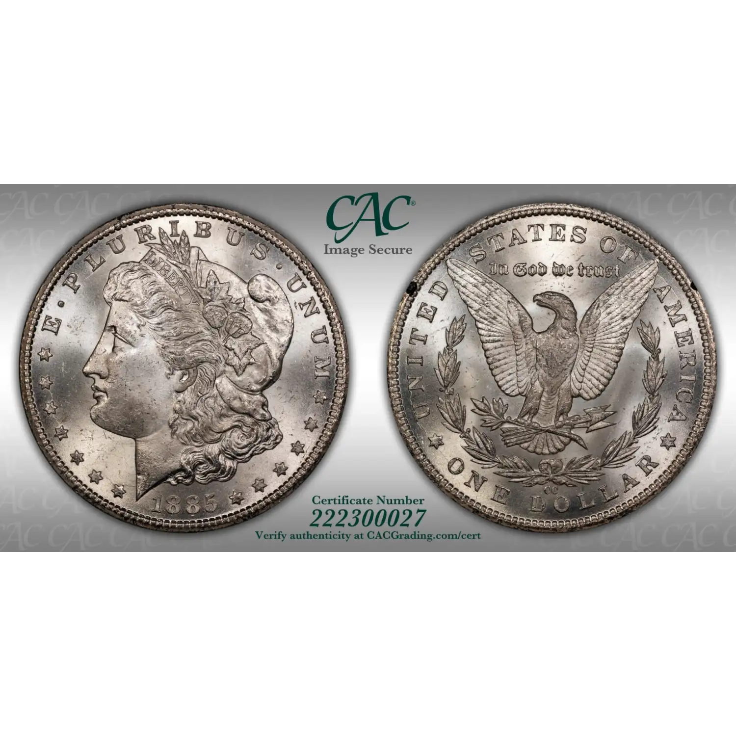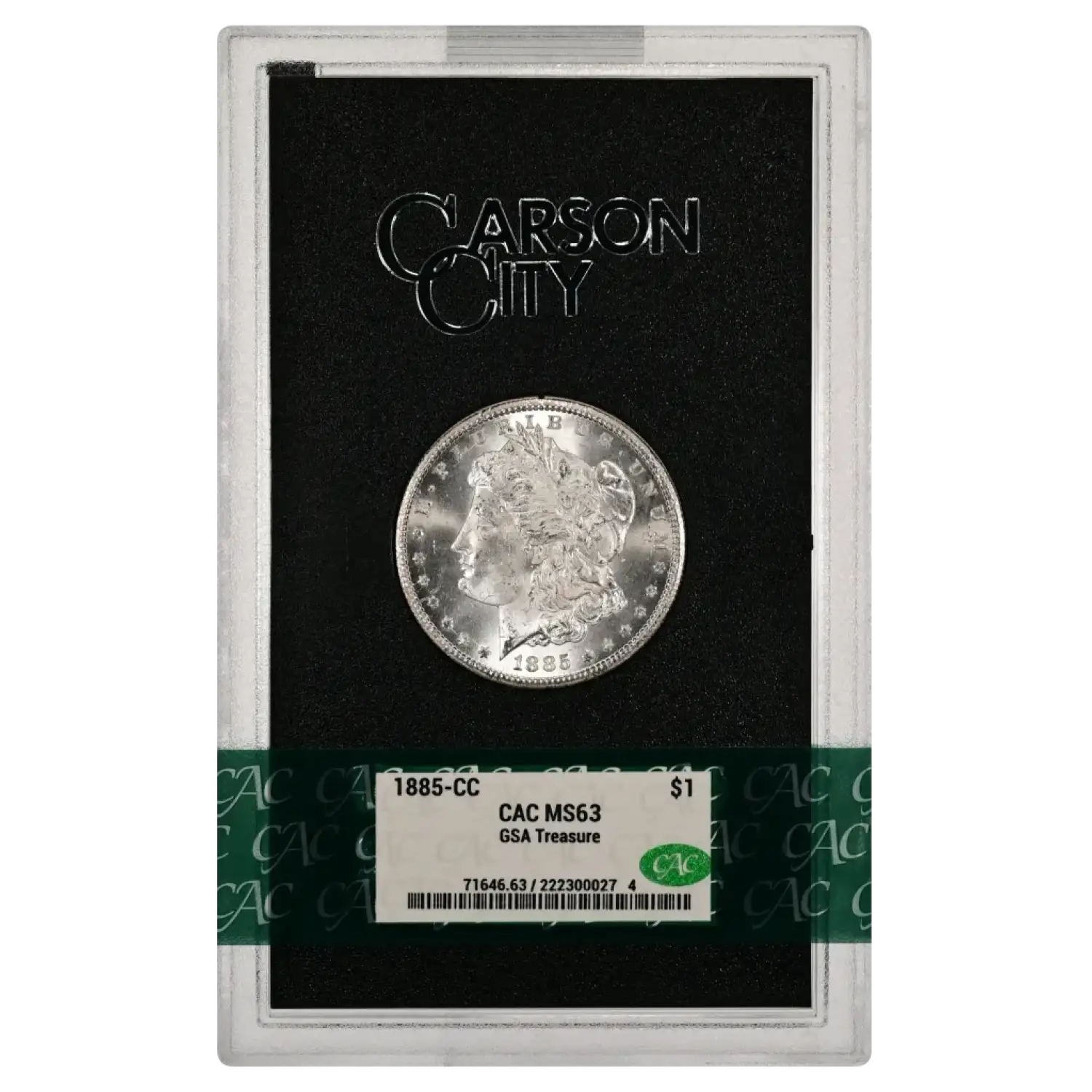 1885-CC GSA Treasure Morgan Silver Dollar CAC Grading (CACG) MS 63