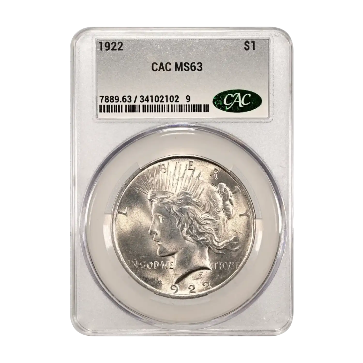 1922 P Peace Silver Dollar CAC Grading (CACG) MS 63