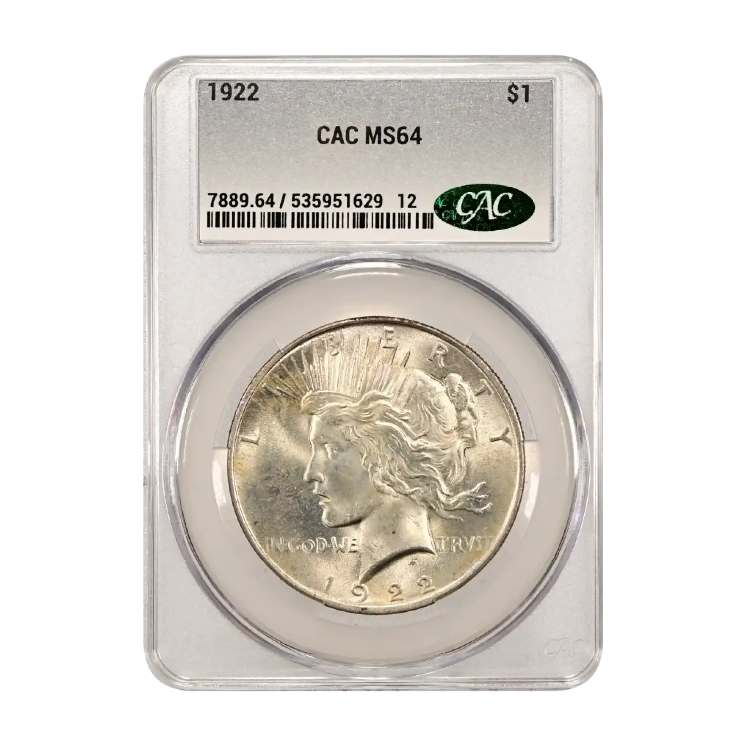 1922 P Peace Silver Dollar CAC Grading (CACG) MS 64