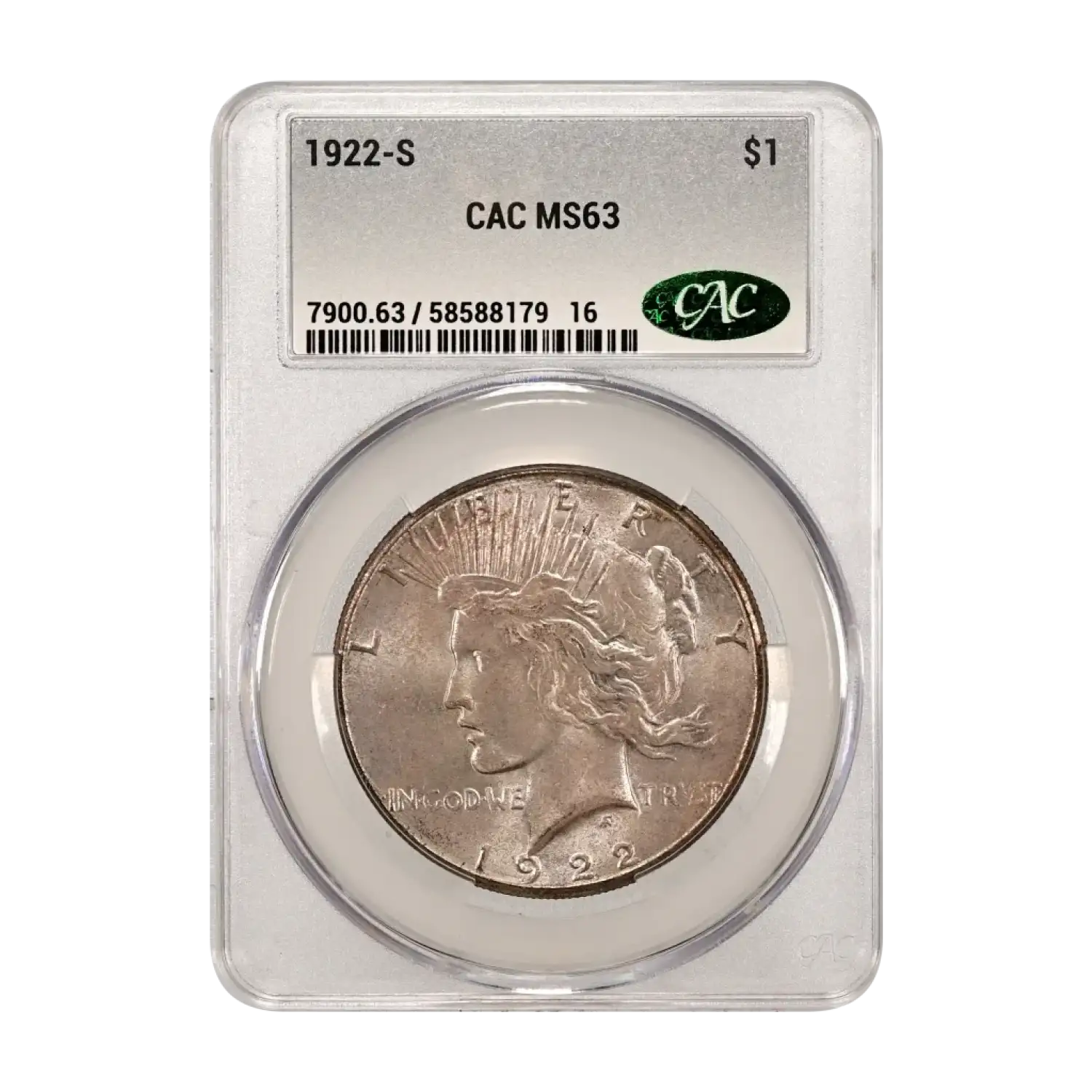 1922-S Peace Silver Dollar CAC Grading (CACG) MS 63