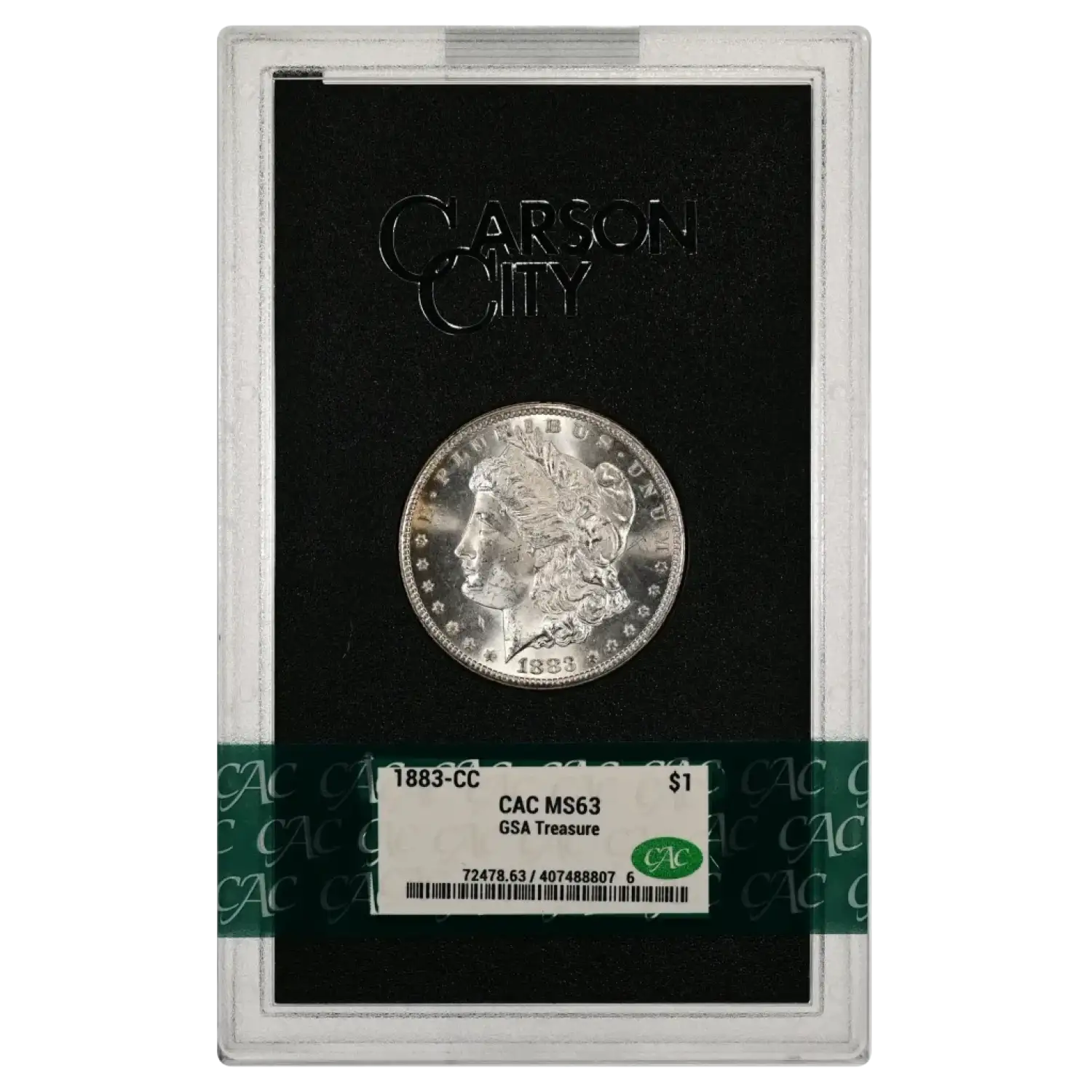 1883-CC GSA Treasure Morgan Silver Dollar CAC Grading (CACG) MS 63