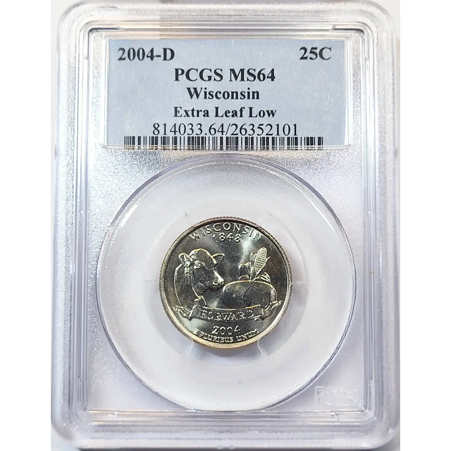 2004-D State Quarter PCGS MS-64 Wisconsin - Extra Leaf Low