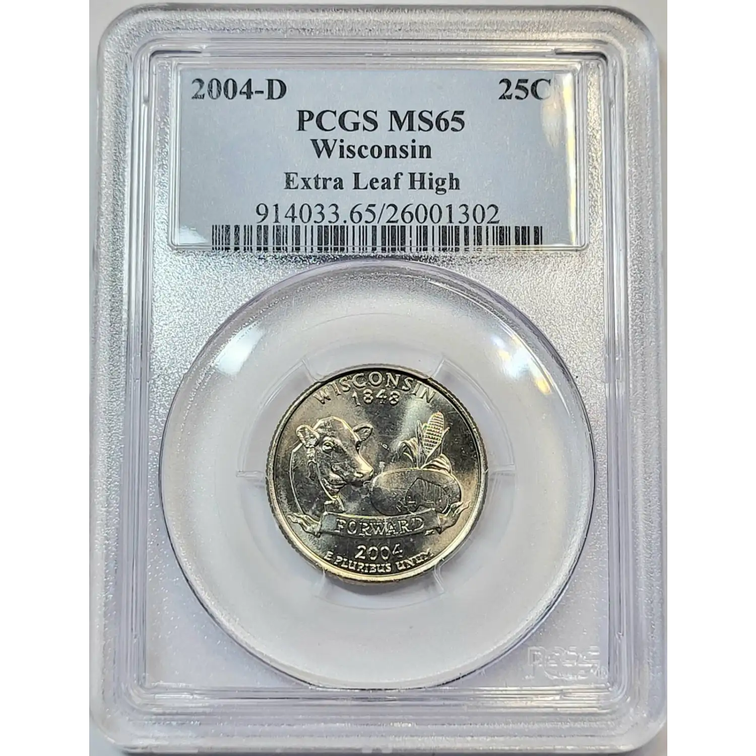 2004-D State Quarter PCGS MS-65 Wisconsin - Extra Leaf High