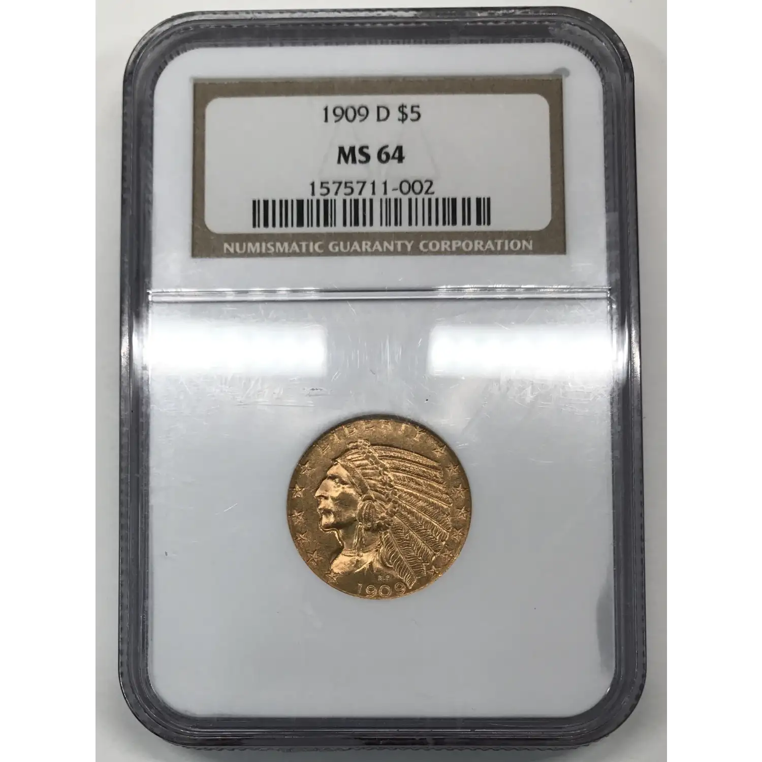 1909-D $5 Gold Indian Head Half Eagle NGC MS-64