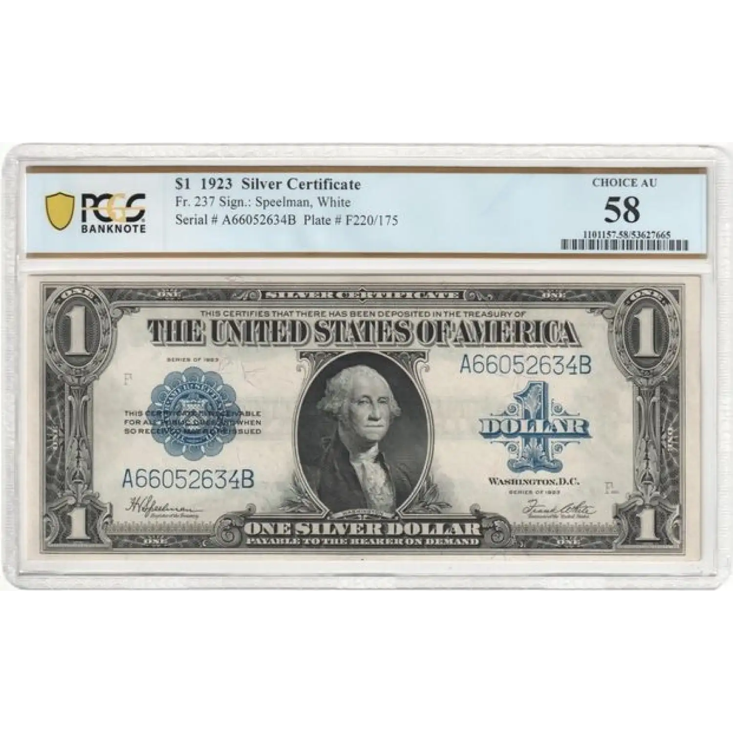 1923 "Horse Blanket" $1 Silver Certificate FR#237 PCGS Banknote AU 58