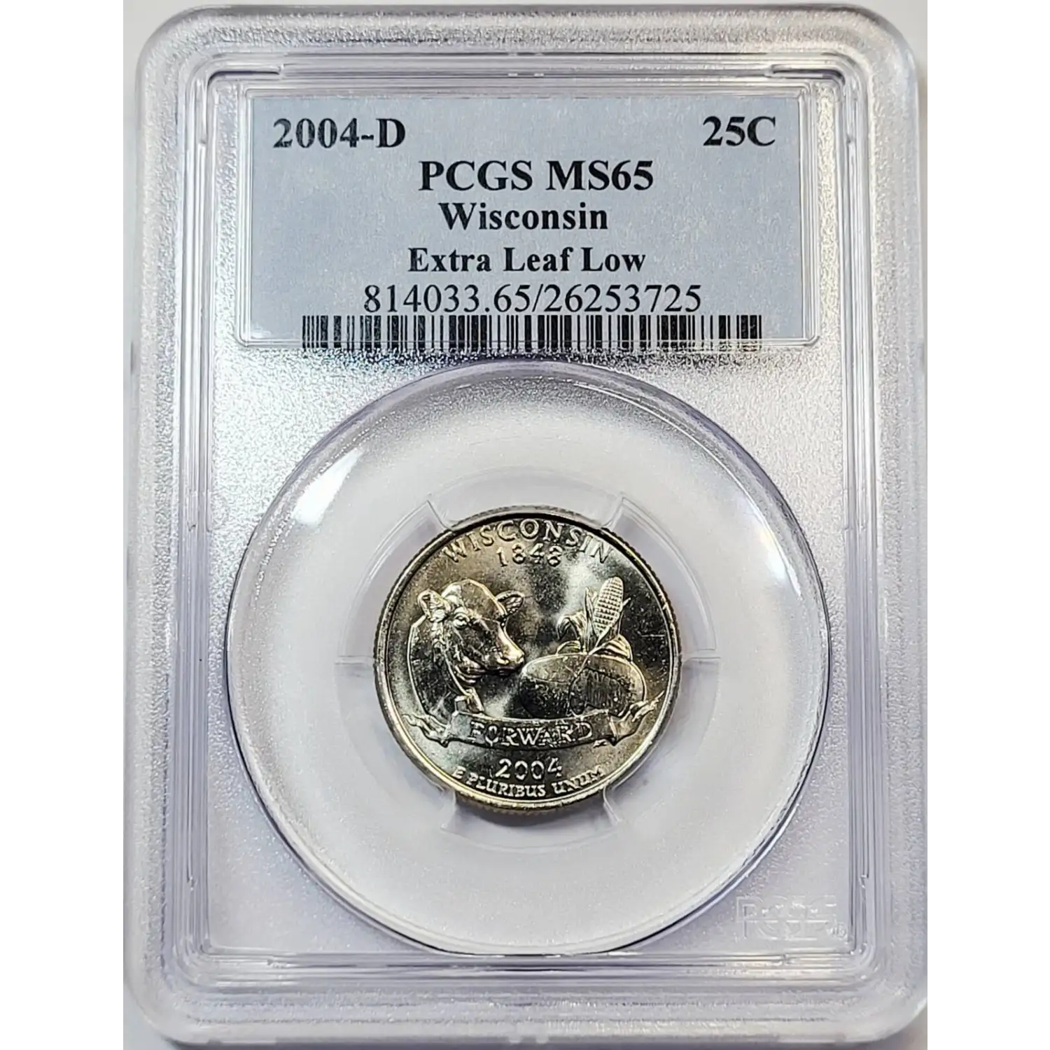 2004-D State Quarter PCGS MS-65 Wisconsin - Extra Leaf Low