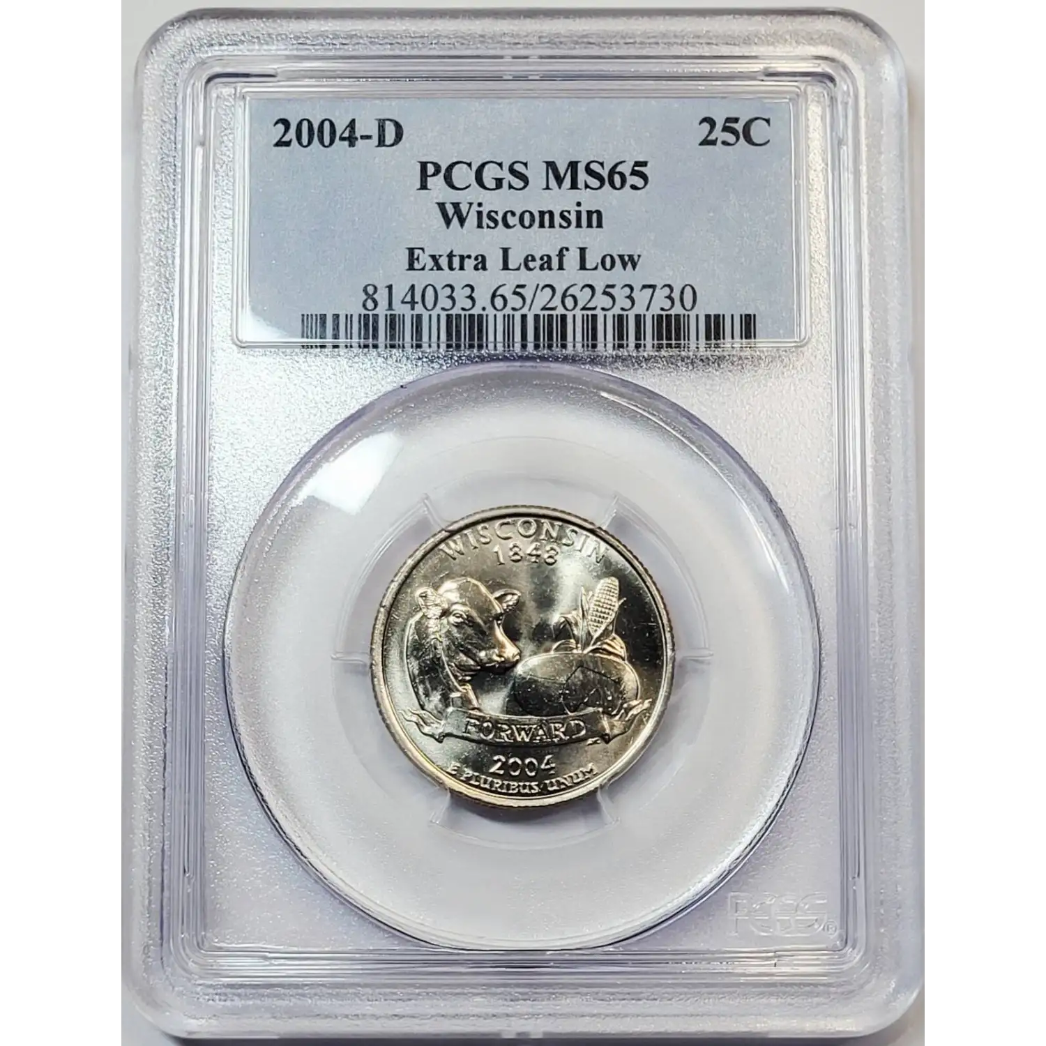 2004-D State Quarter PCGS MS-65 Wisconsin - Extra Leaf Low