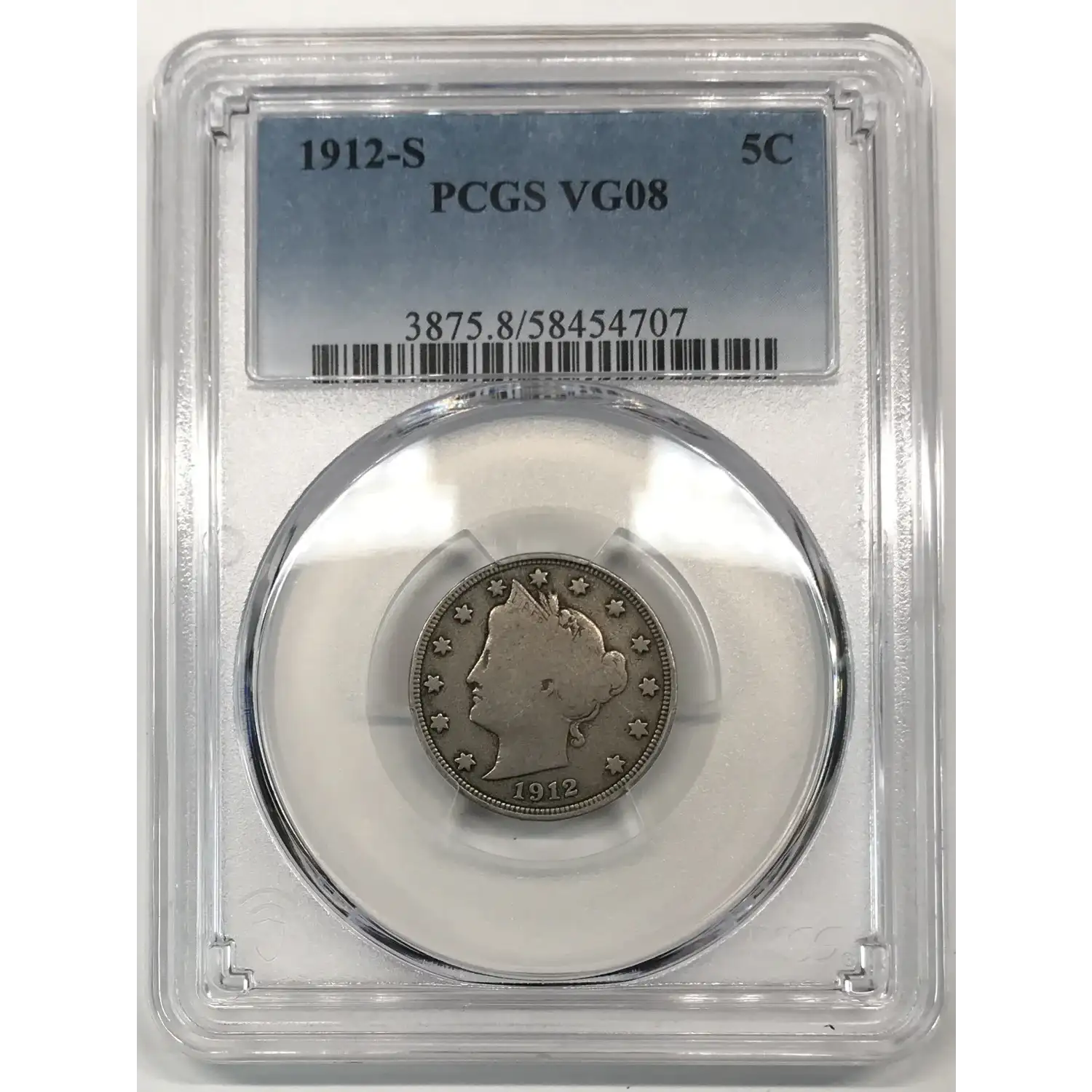 1912-S Liberty Head V Nickel PCGS VG-8