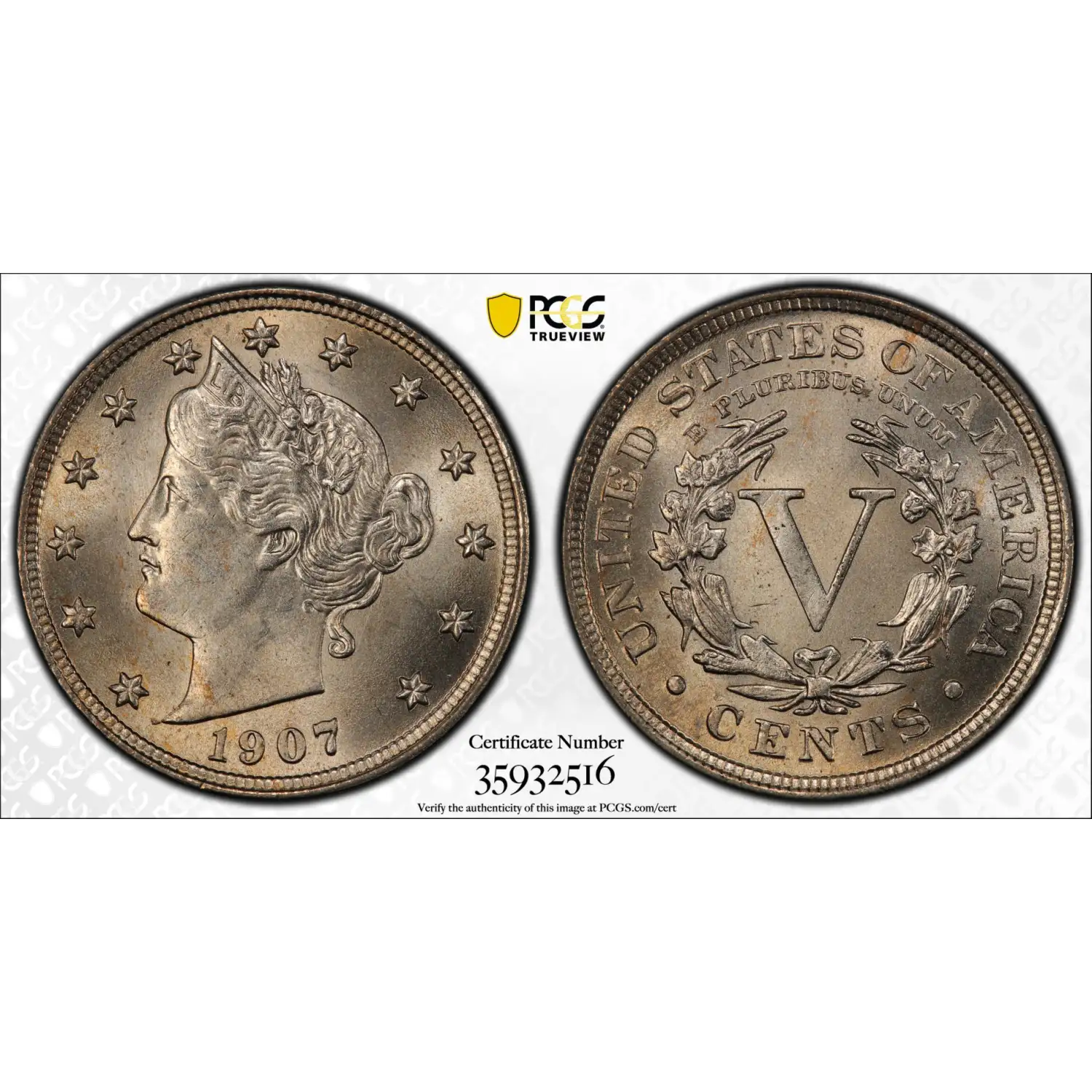 1907 P Liberty Head V Nickel PCGS MS-66+ Plus CAC