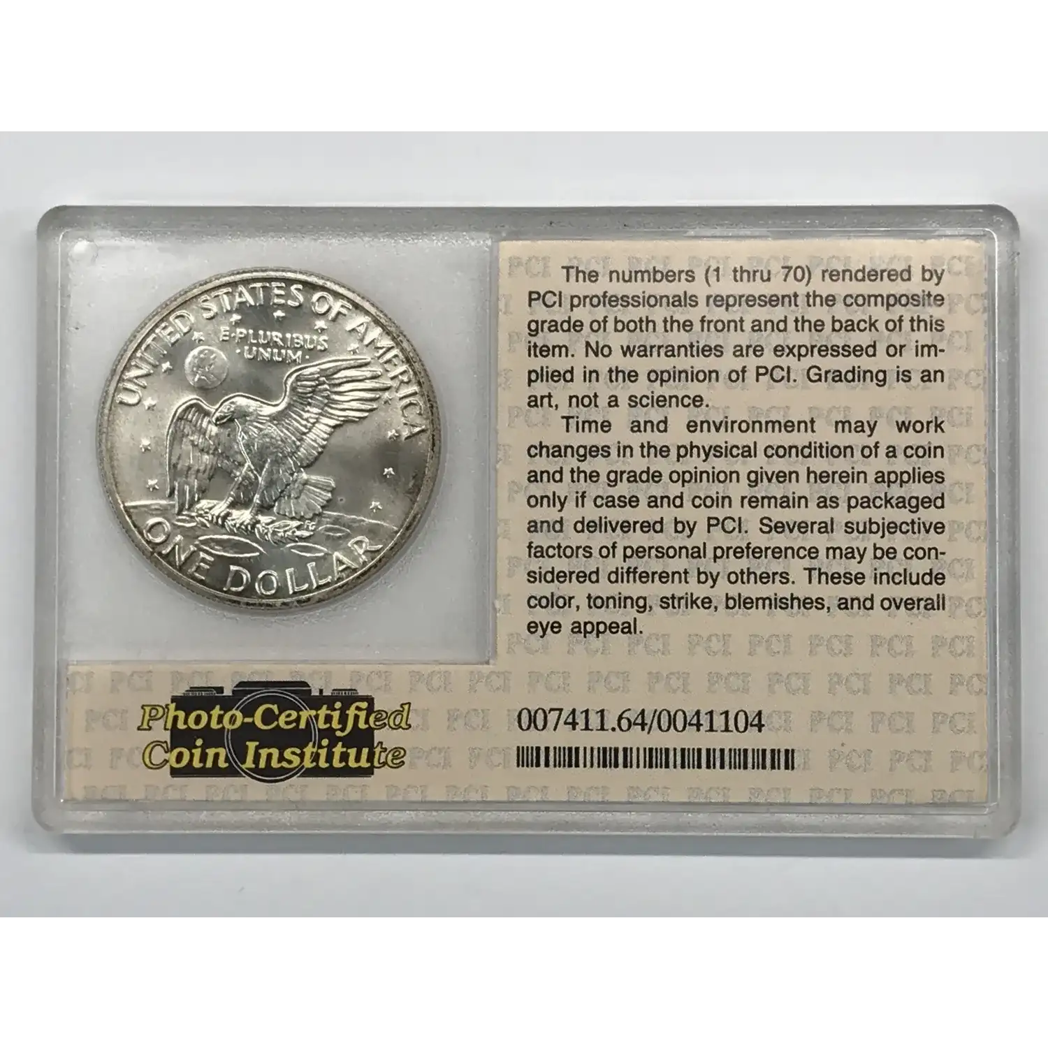 1972-S Silver Ike Eisenhower Dollar - Vintage PCI Photo Holder - Photo-Certified Coin Institute