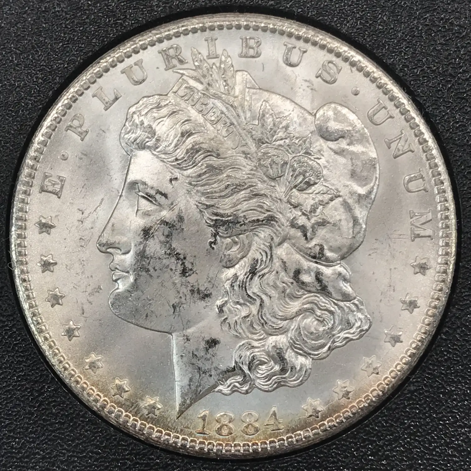 1884-CC Morgan Silver Dollar Dealer GSA Hoard w Box - VAM-3A Die Break Left Wreath Top