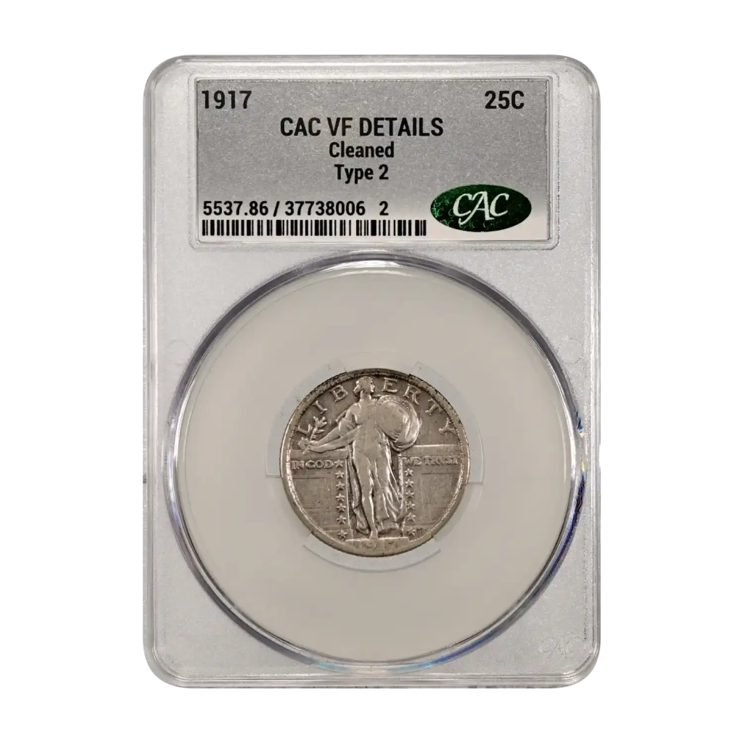 1917 P Type 2 Standing Liberty Quarter CAC Grading (CACG) VF Details (cleaned)