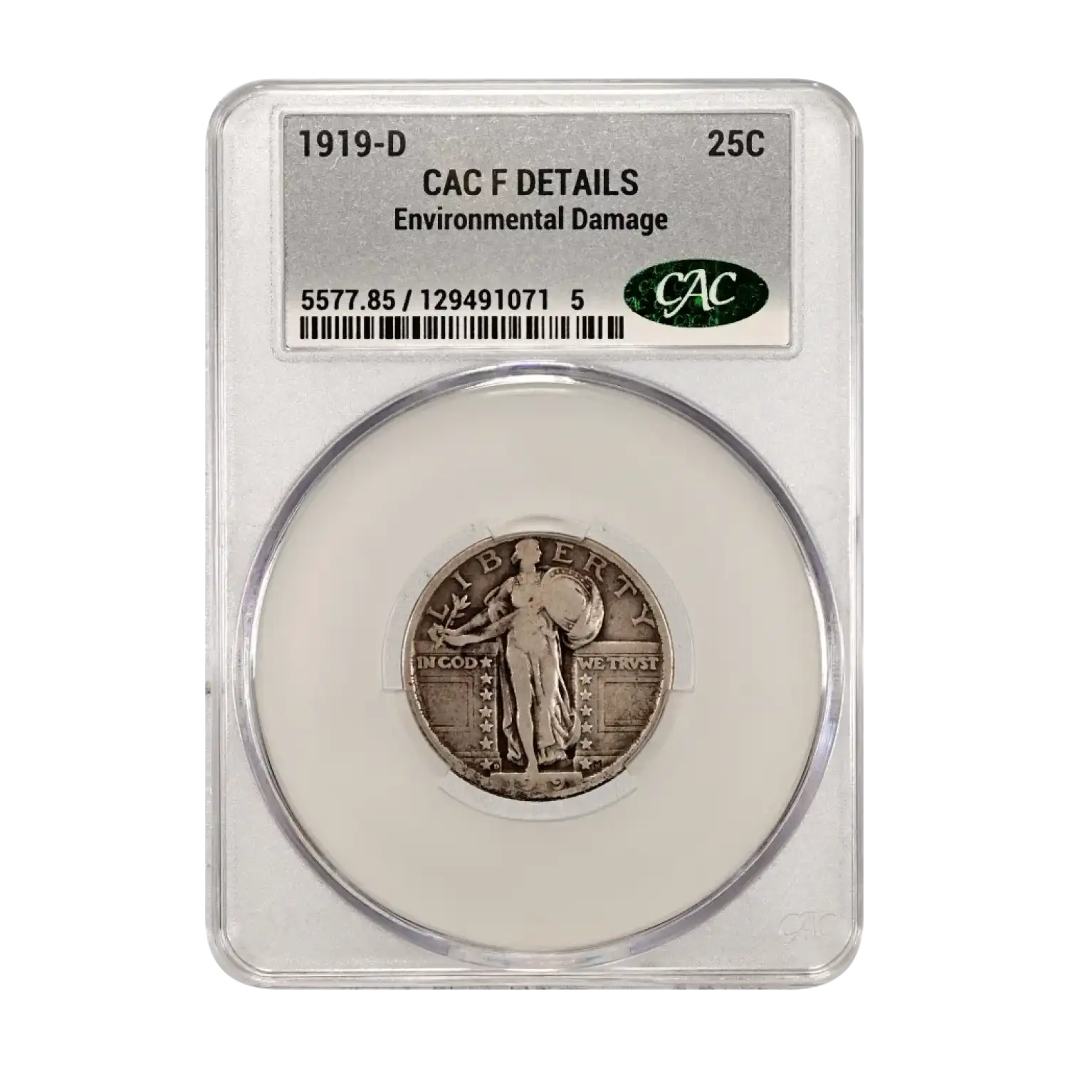 1919-D Standing Liberty Quarter CAC Grading (CACG) F/Fine Details (environmental damage)