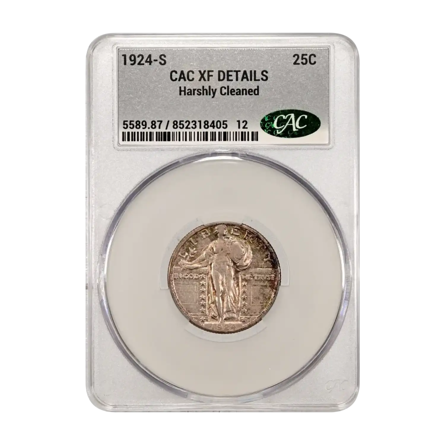 1924-S Standing Liberty Quarter CAC Grading (CACG) XF Details (harshly cleaned)