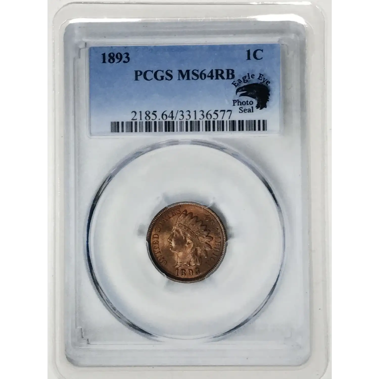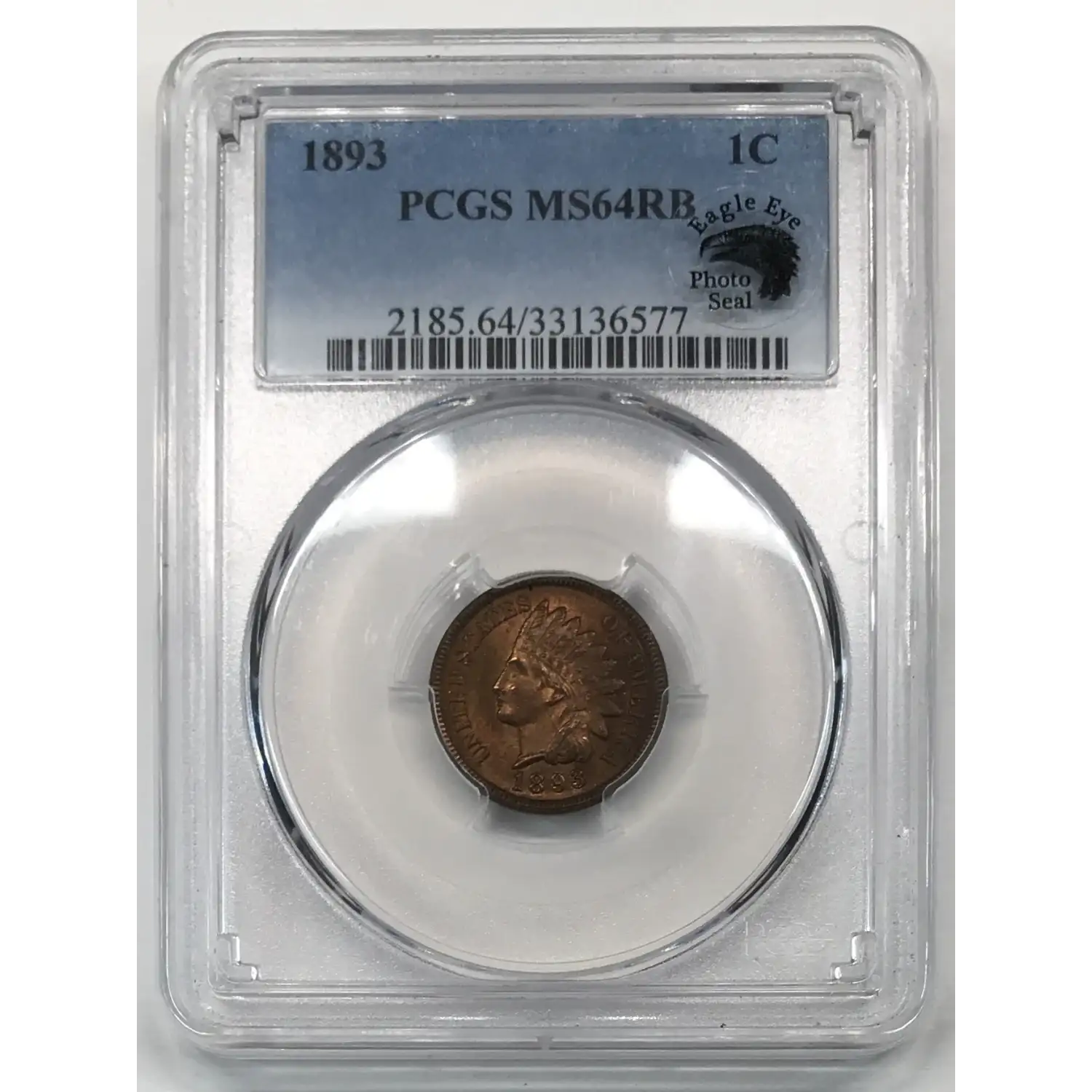 1893 P Indian Head Cent PCGS MS-64 RB - Eagle Eye Photo Seal w/ Card
