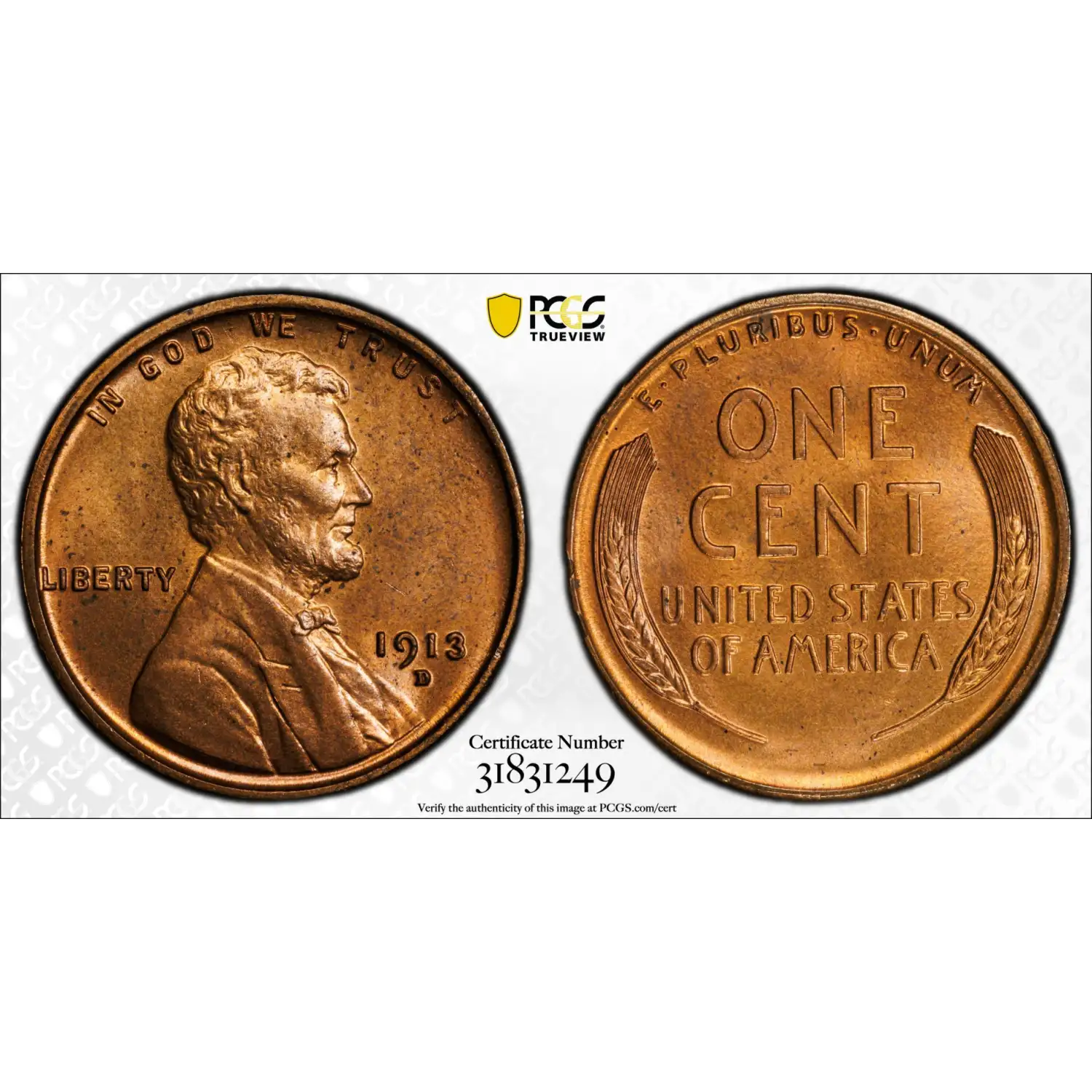 1913 D Lincoln Wheat Cent PCGS MS-64 RD CAC