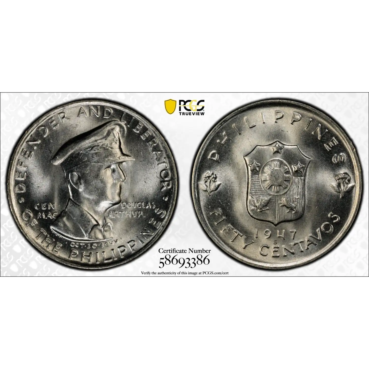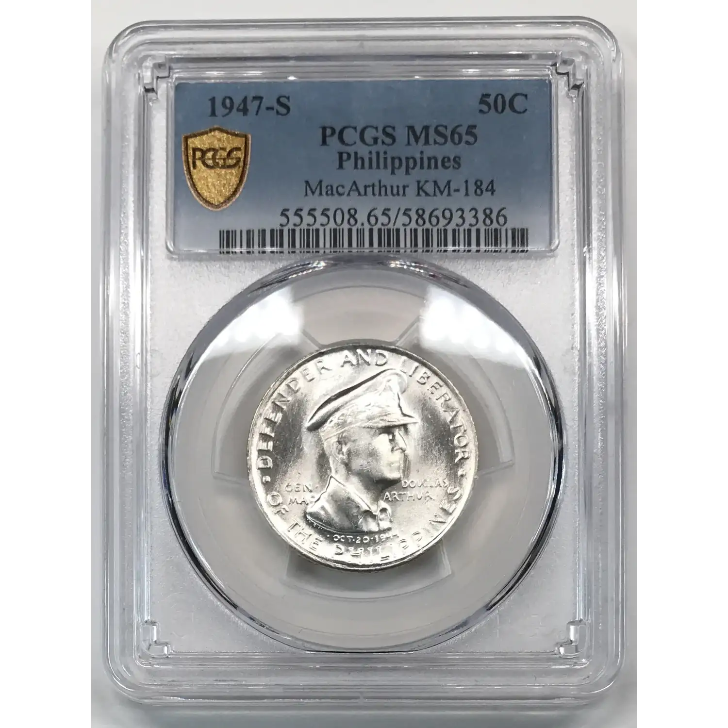 1947 S PHILIPPINES Silver 50 CENTAVOS PCGS MS-65 - Douglas MacArthur KM-184