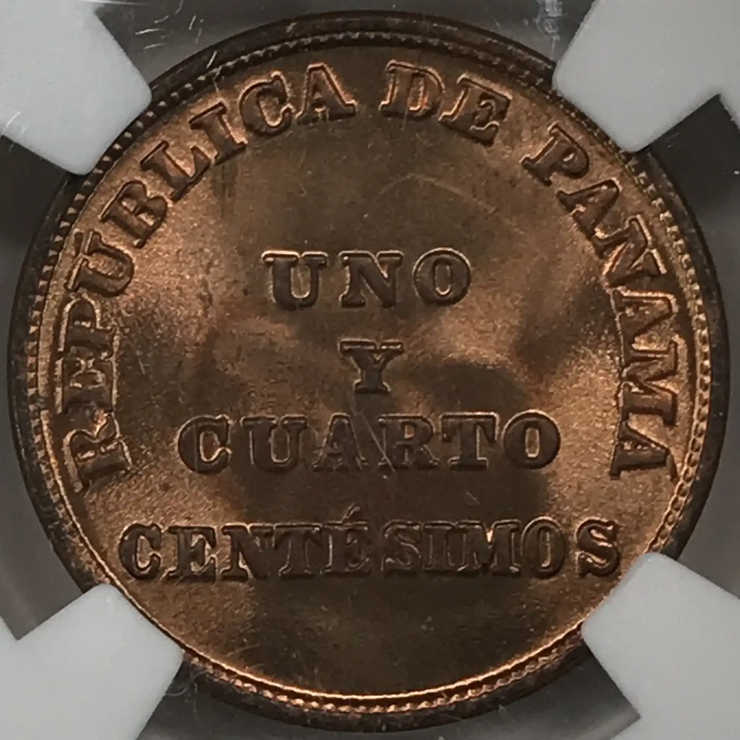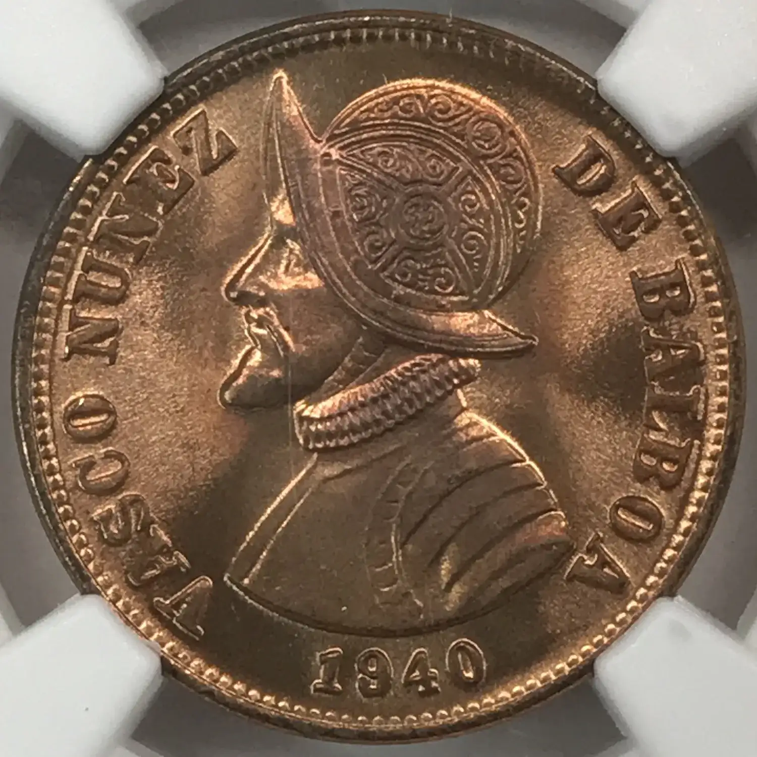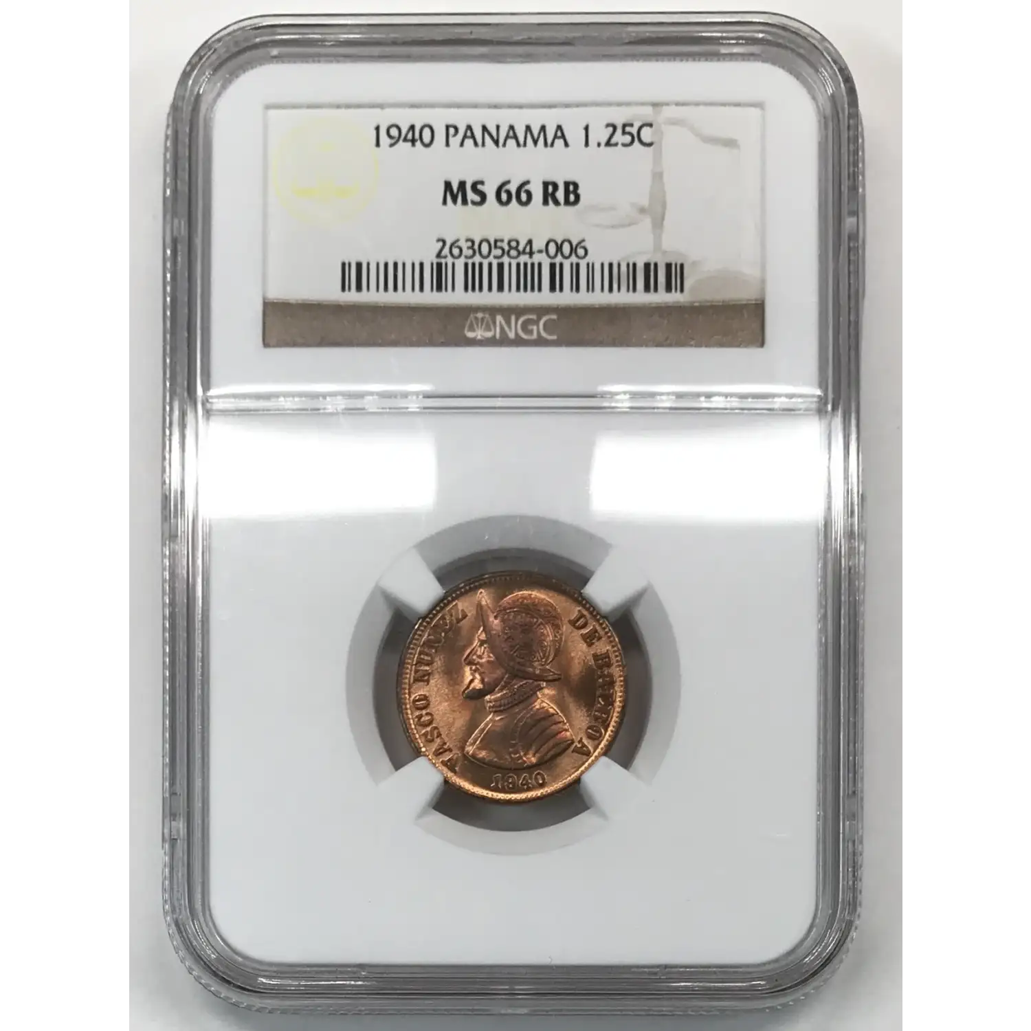 1940 PANAMA Bronze 1-1/4 CENTESIMOS (1.25) NGC MS-66 RB - KM#15 - minted at Philadelphia US Mint