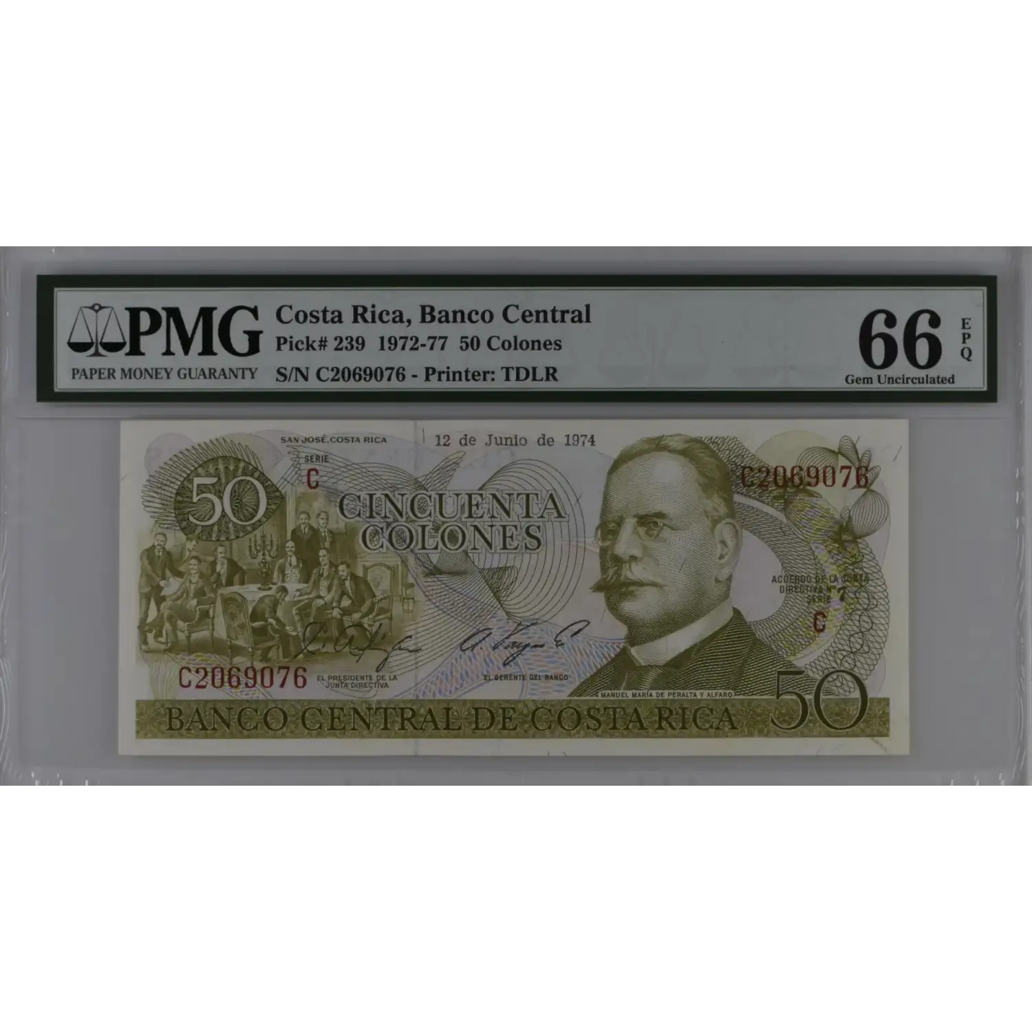 1972-77 Costa Rica Banco Central 50 Colones Pick#P-239 PMG CU 66 EPQ