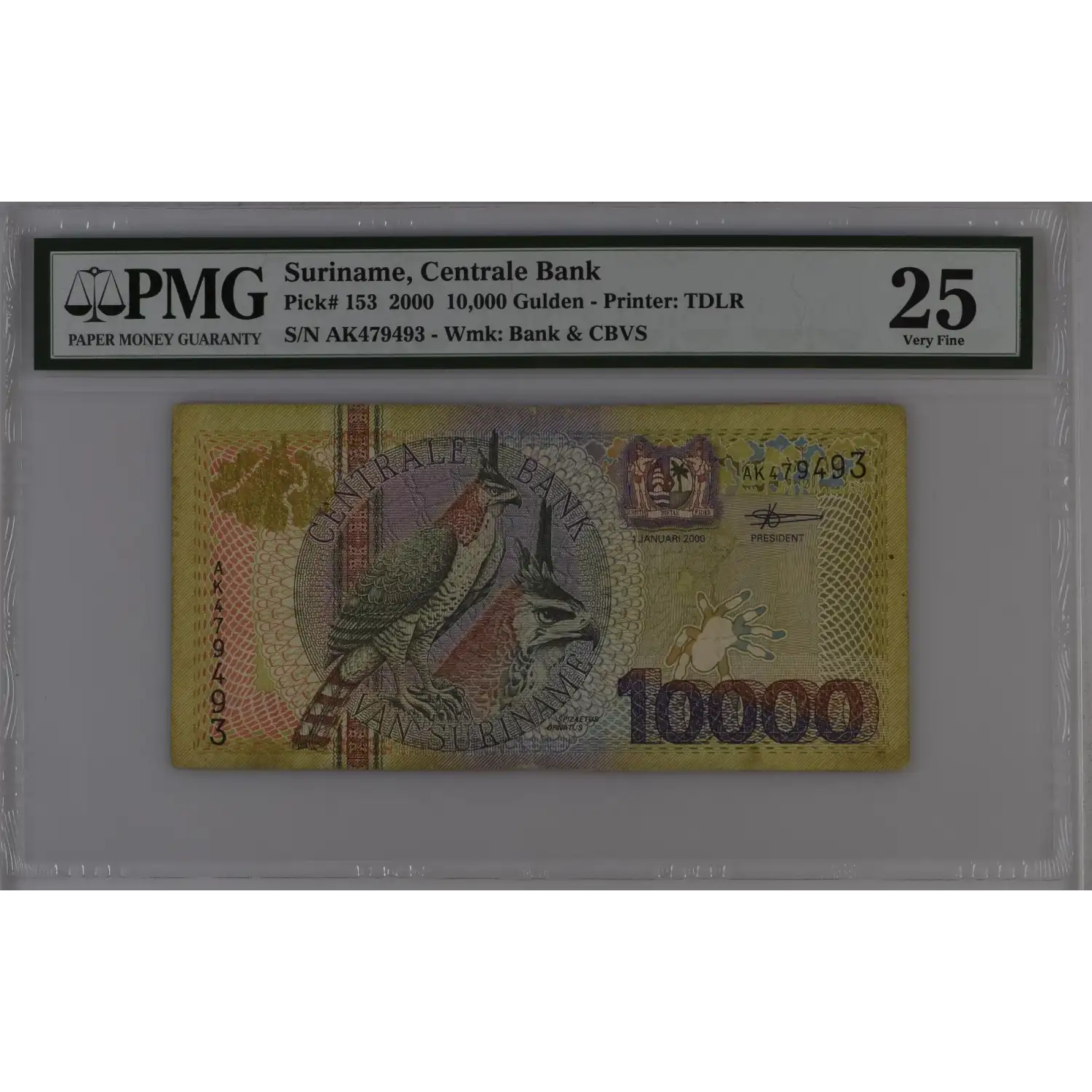 2000 Suriname Centrale Bank 10,000 Gulden Pick#P-153 PMG VF 25
