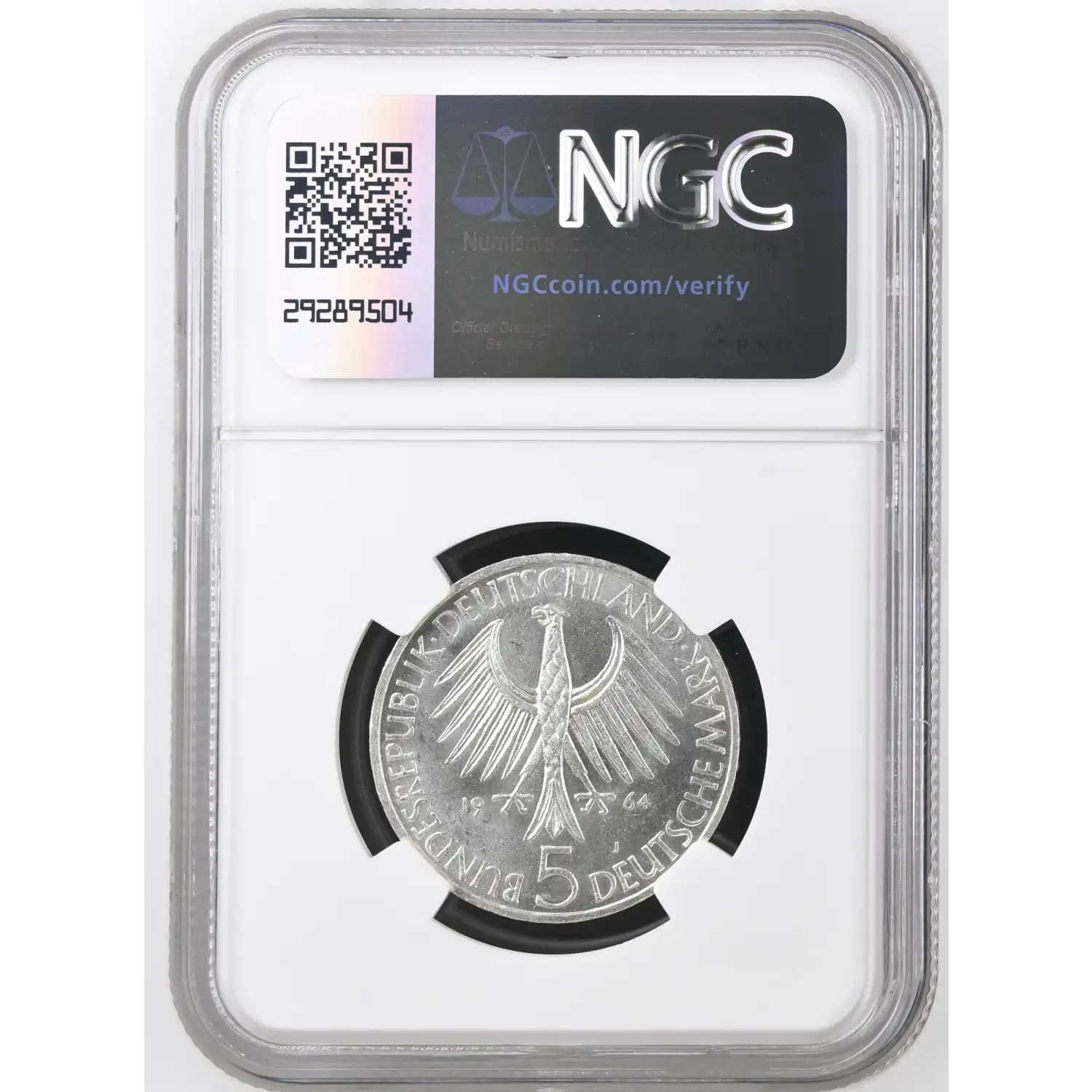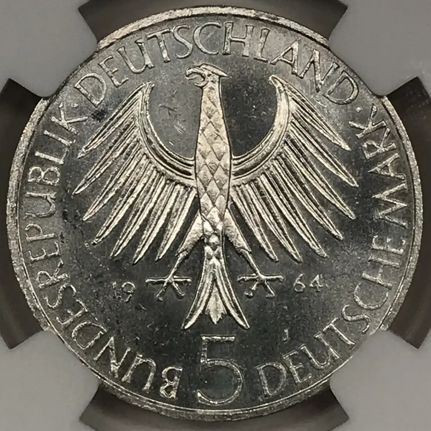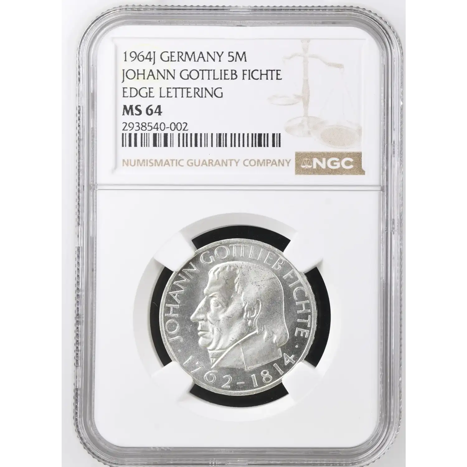 1964-J GERMANY-FEDERAL REPUBLIC Silver 5 MARK NGC MS-64 - JOHANN GOTTLIEB FICHTE, EDGE LETTERING - KM#118.1
