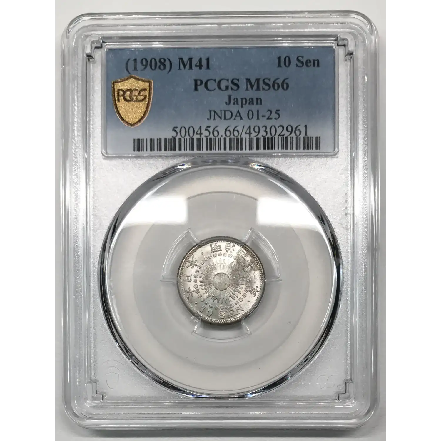 1908 (Meiji M41) JAPAN Silver 10 SEN PCGS MS-66 - JNDA 01-25, Y-29