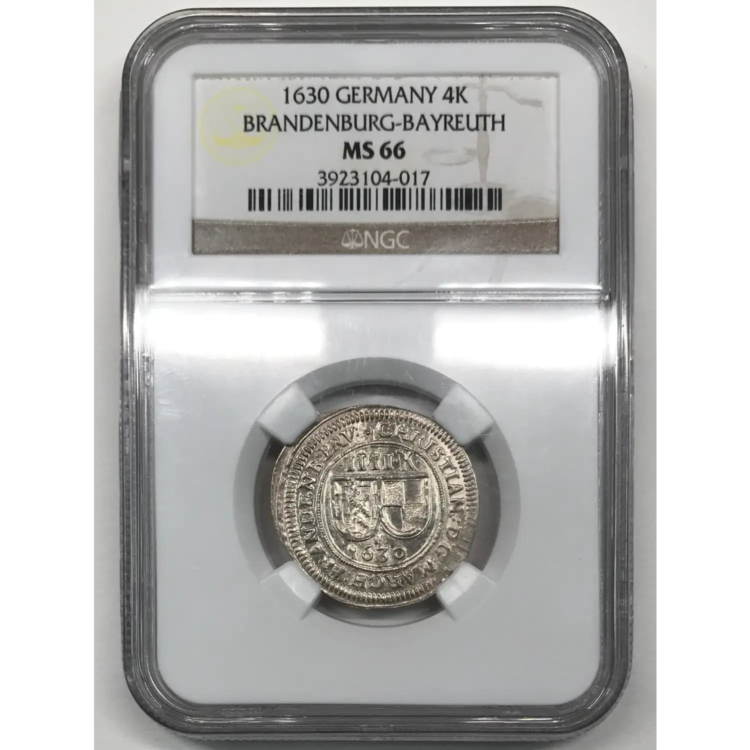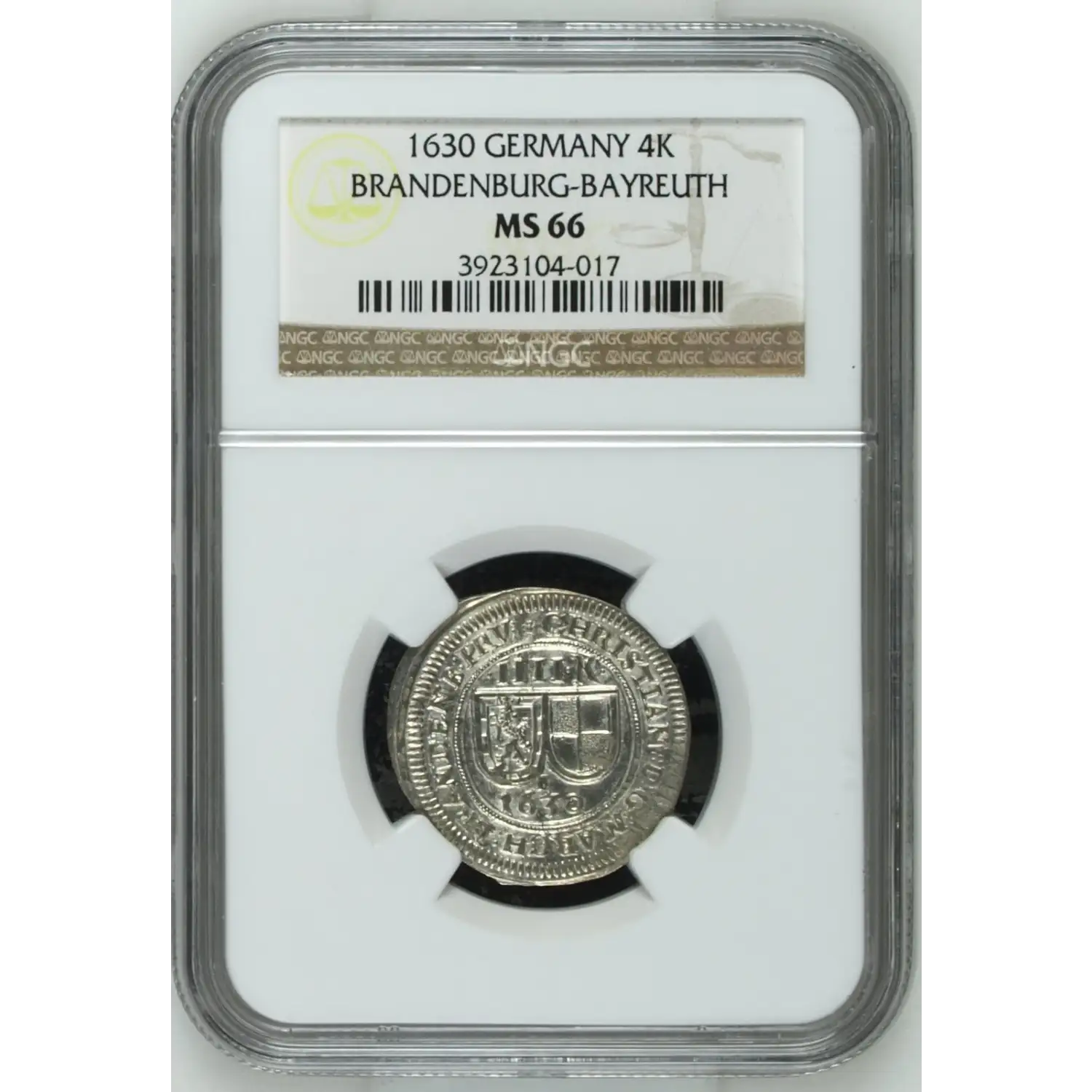 1630 GERMAN STATES Silver 4 KREUZER (Batzen) NGC MS-66 BRANDENBURG-BAYREUTH