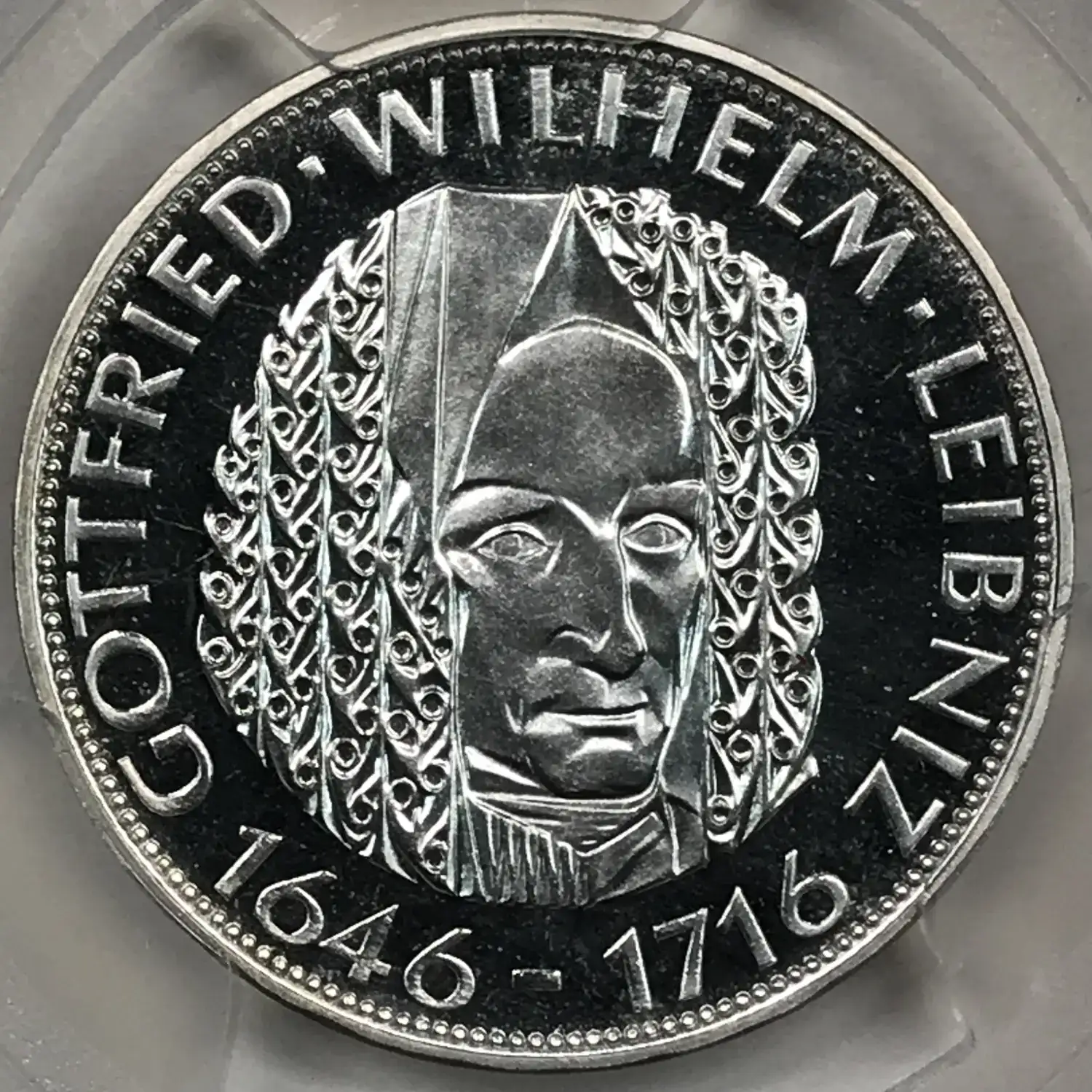 1966-D GERMANY-FEDERAL REPUBLIC Silver 5 MARK PCGS PR-66 CAM Wilhelm Leibniz J-394 KM-119