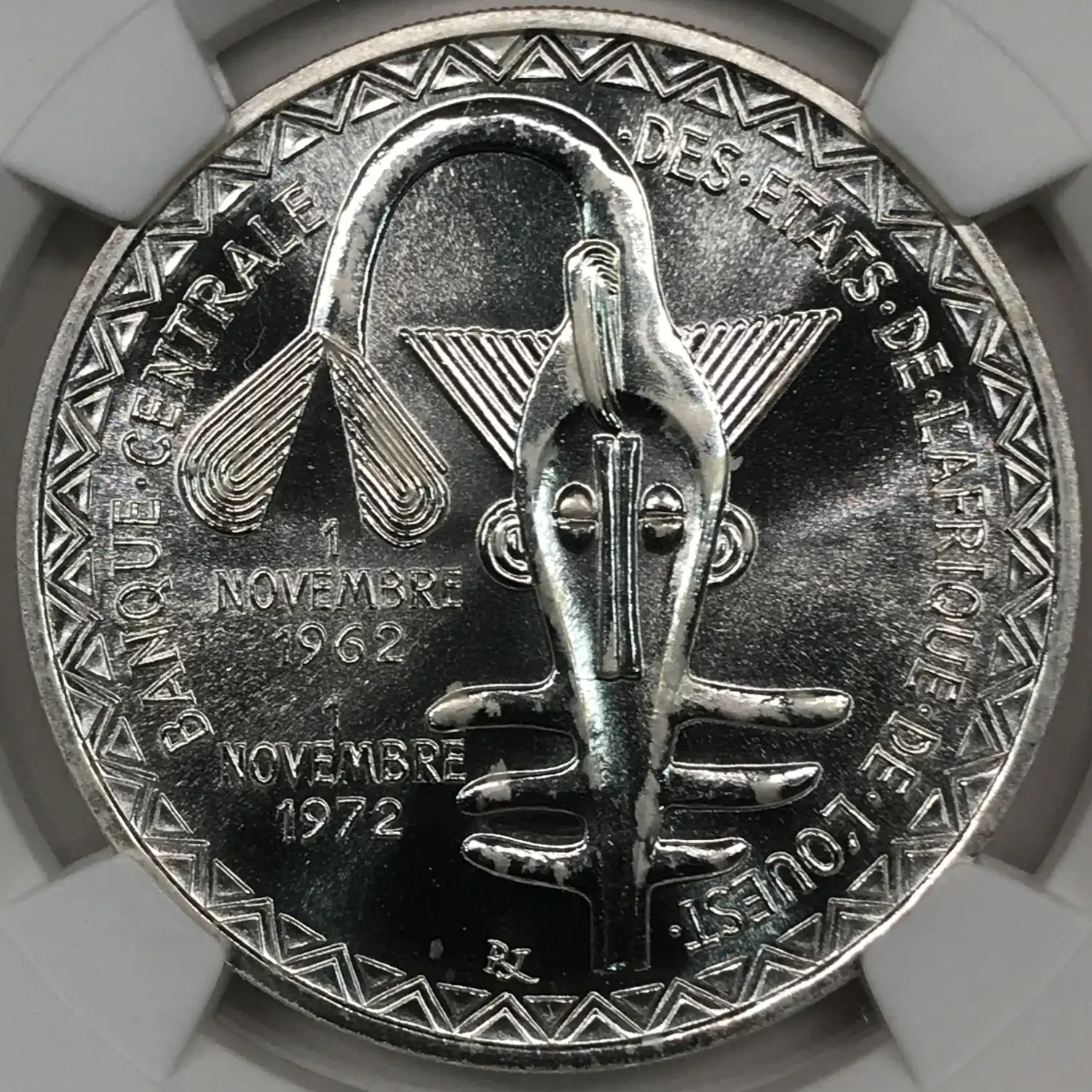 1972 West African States Silver 500 Francs NGC MS-63 MONETARY UNION 10TH ANNIVERSARY