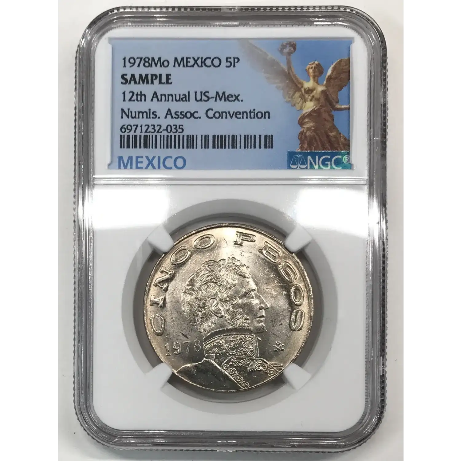 1978-Mo MEXICO Copper-Nickel 5 PESOS NGC SAMPLE 2024 12th Annual USMEX Coin Show