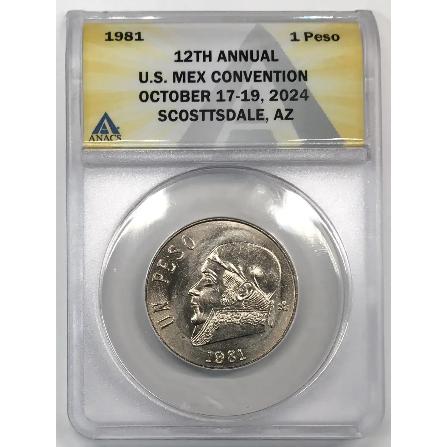 1981-Mo MEXICO Copper-Nickel PESO ANACS SAMPLE 2024 12th Annual USMEX Coin Show Sample Slab
