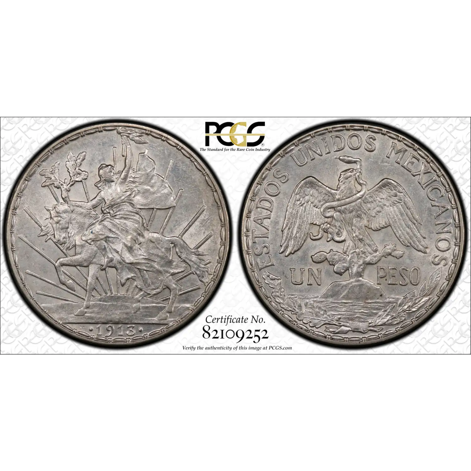 1913 Mexico Silver Caballito Peso PCGS AU-58 KM-453 Caballito