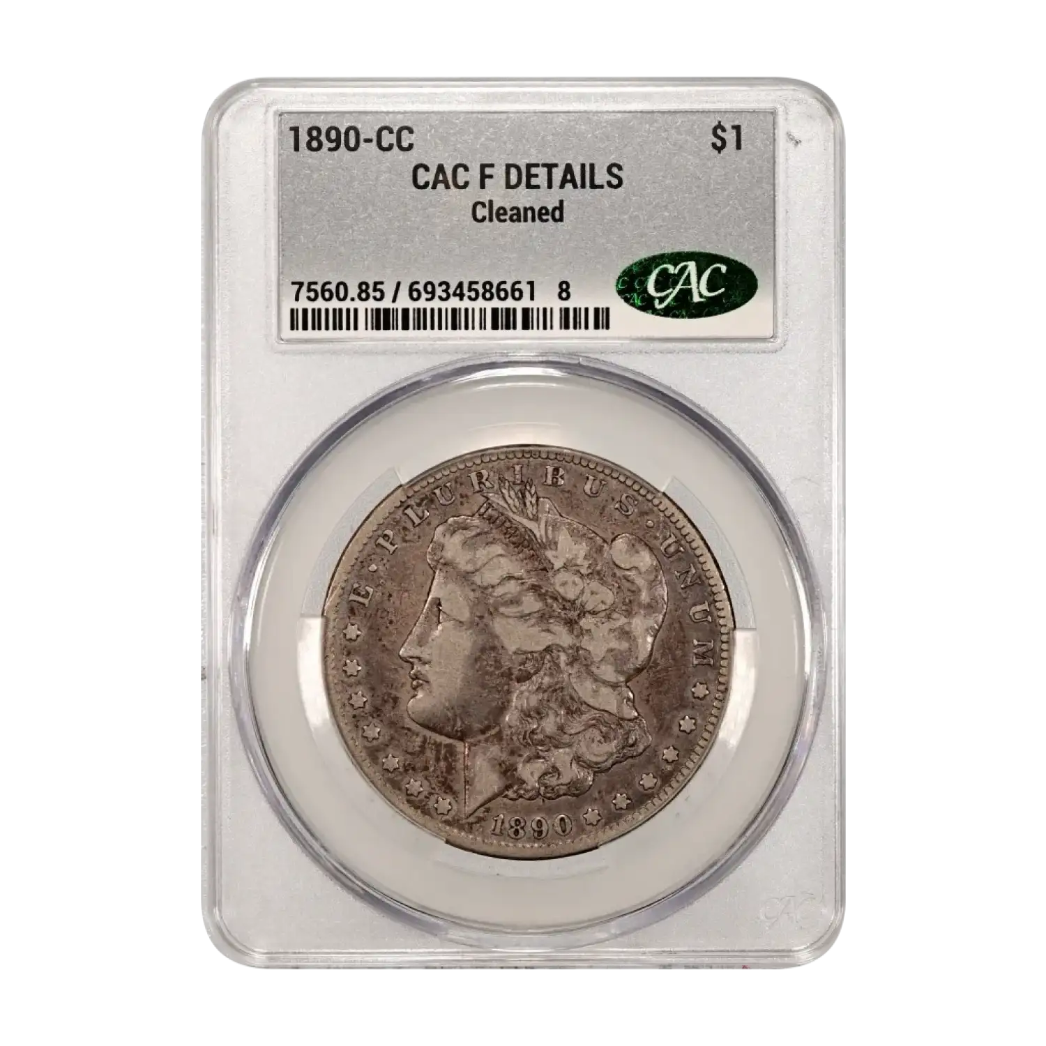 1890-CC Morgan Silver Dollar CAC Grading (CACG) Fine/F Details (cleaned)