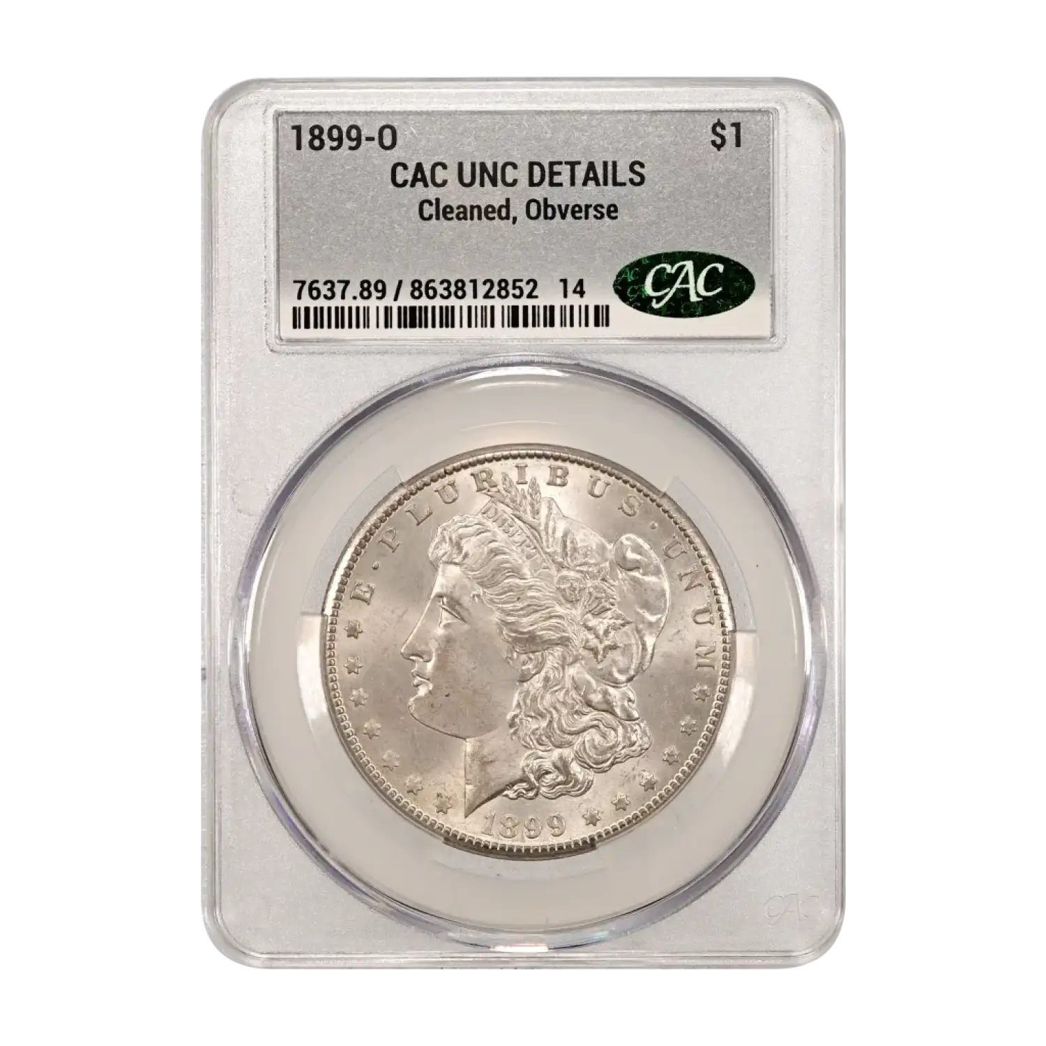 1899-O Morgan Silver Dollar CAC Grading (CACG) UNC Details (cleaned obverse)