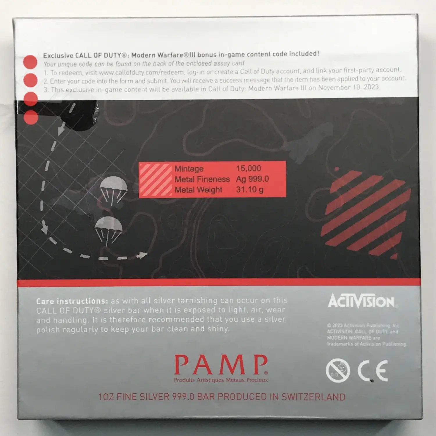 - 1 oz Silver Bar Call of Duty Modern Warfare III PAMP