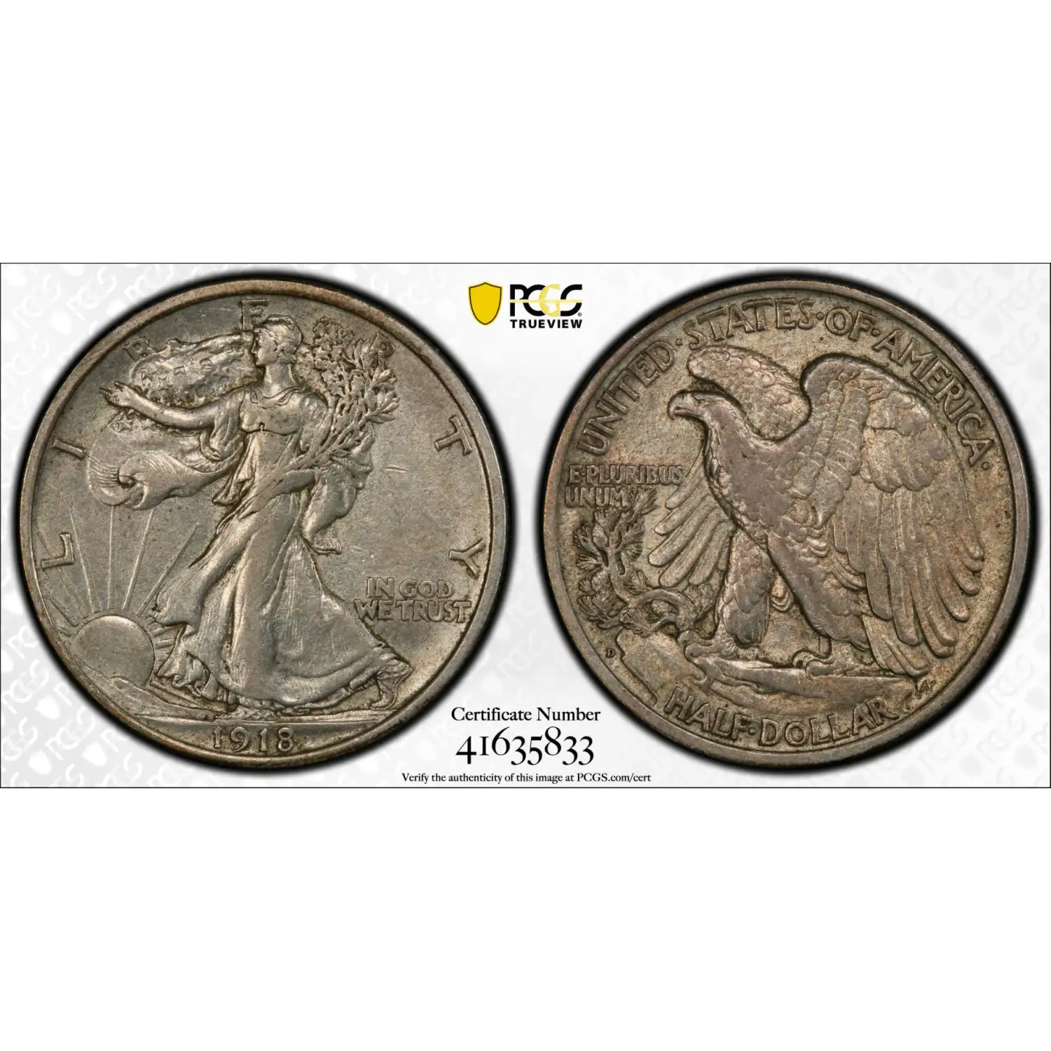1918 D Walking Liberty Half Dollar PCGS AU-50