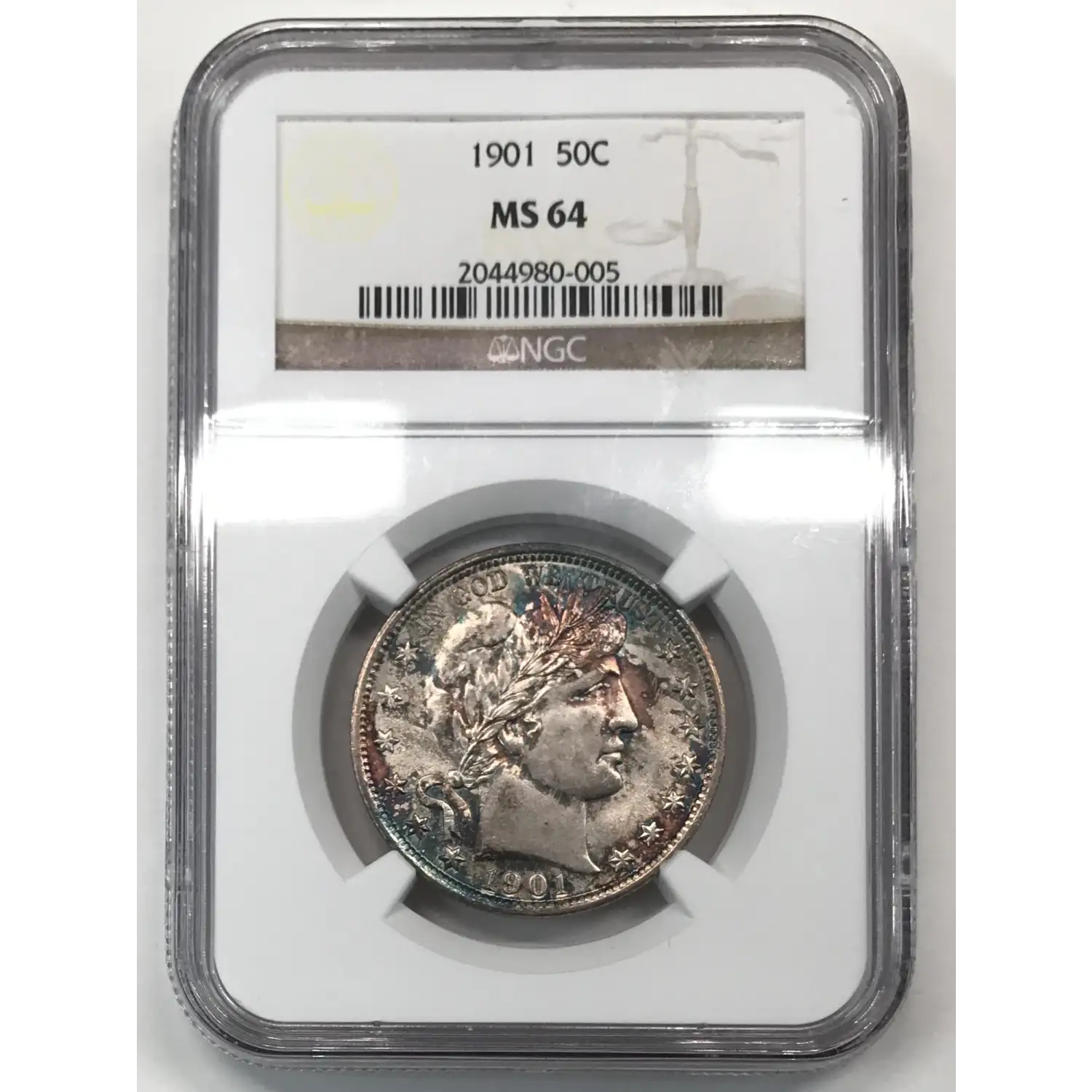 1901 P Barber Half Dollar NGC MS-64 - Rainbow Toning