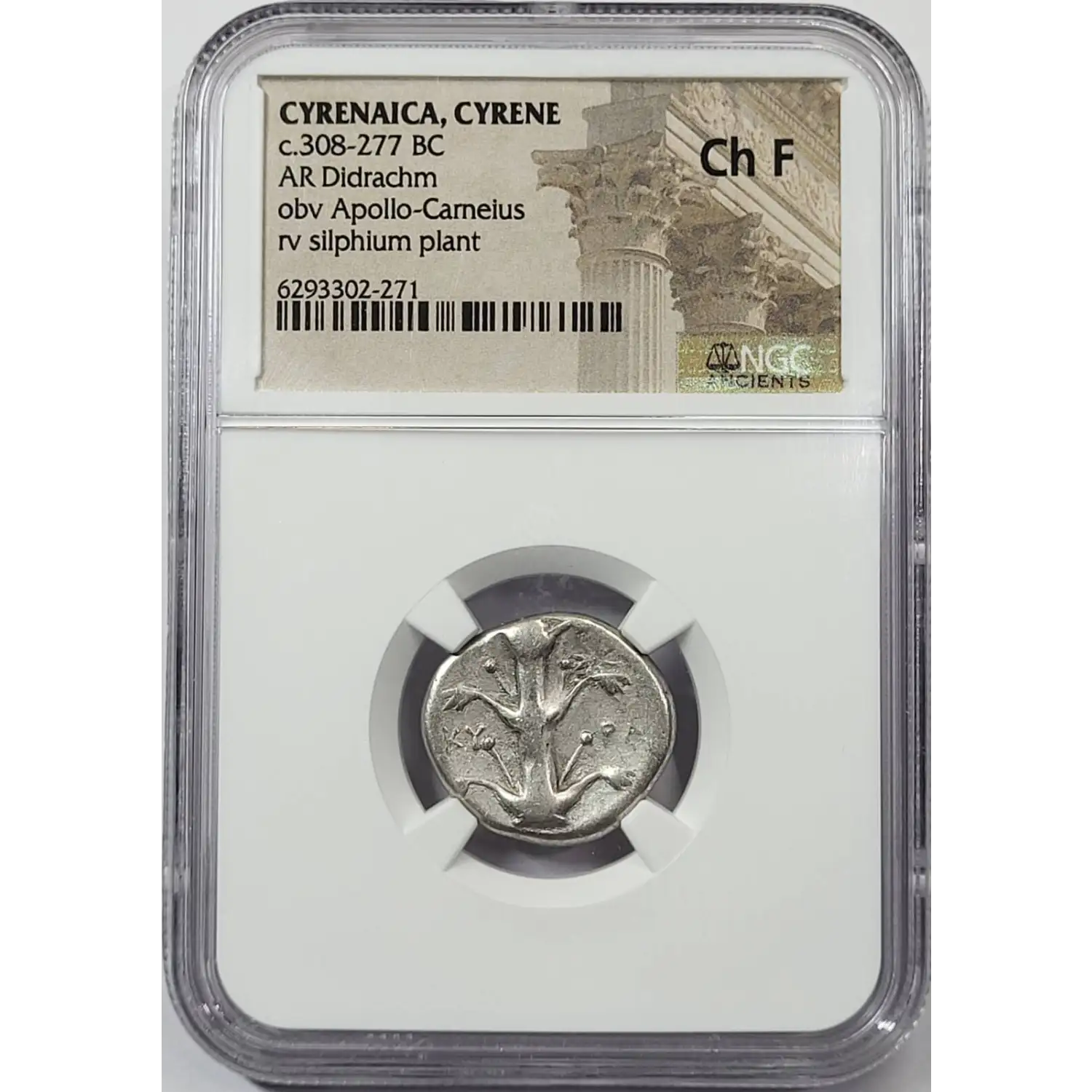 Greece Cyrene 308-277 BC AR Didrachm NGC Ancients Ch F