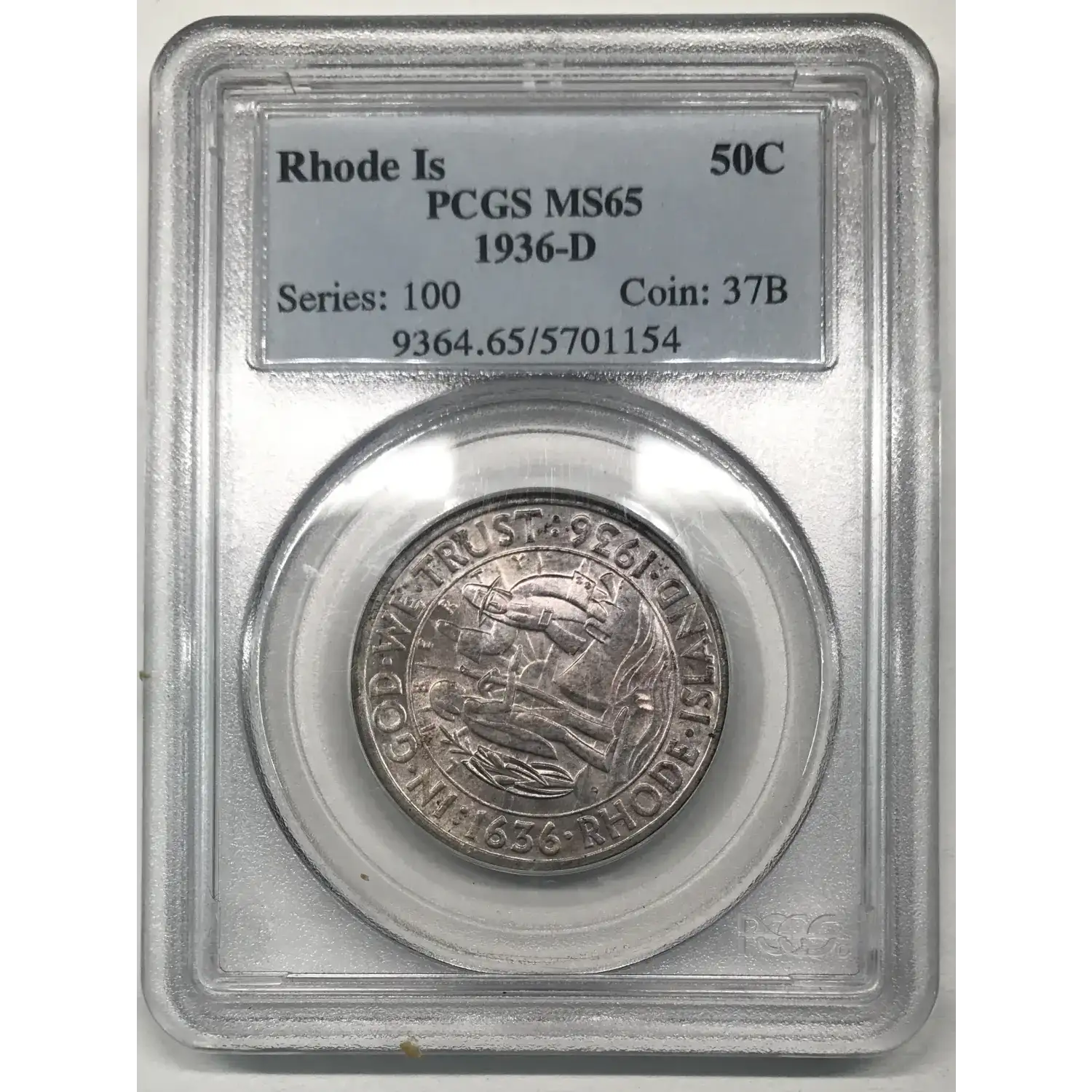 1936 D Providence Rhode Island Tercentenary Commemorative Half Dollar PCGS MS-65