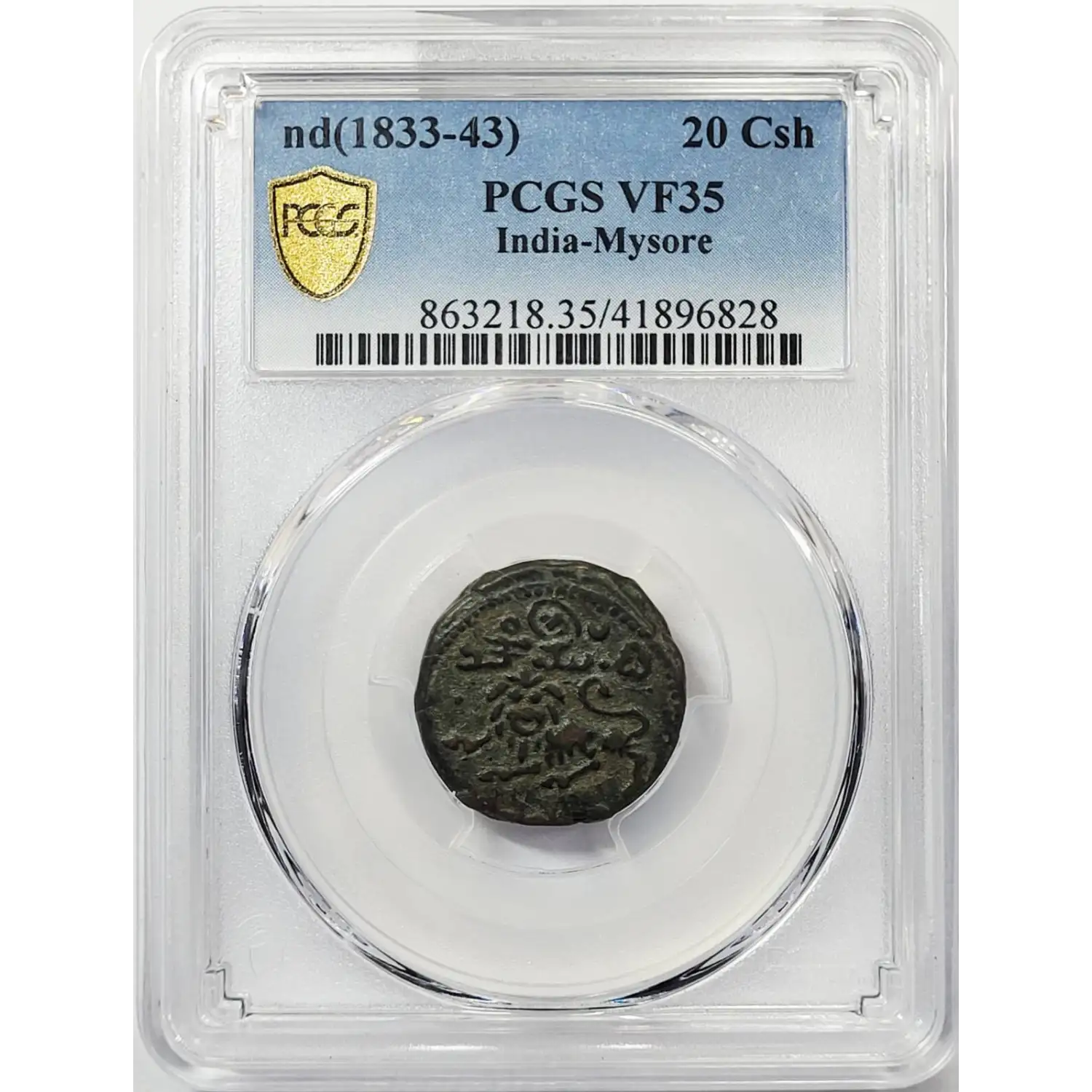 ND (1833-43) INDIA-PRINCELY STATES Copper 20 CASH PCGS VF-35 India-Mysore